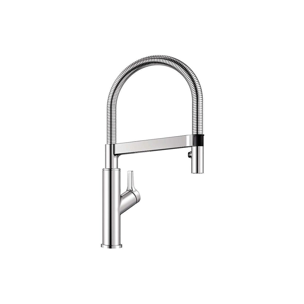 522404 - Mitigeur évier chromé Solenta-S Blanco 522404 avec douchette et orientable à 360°. - Type : Robinet. Gamme : Solenta-S. Type de robinetterie : Mitigeur avec douchette. Type de bec : Col de cygne. Degré d'orientatrion du bec : 360°. Douchette : Oui. Type de cartouche : A disques céramiques. Plaque de renfort : Oui. Clapet anti-retour : Oui. Divers : Finition PVD UltraResist (facile à nettoyer grâce au traitement PVD et très résistant). Couleur : Chrome. Inclus : Support magnétique pour la douchette, Flexible de douchette gainé métal, Flexibles de raccordement longueur 450 mm et écrou 3/8''. Hauteur (cm) : 44.5. Profondeur (cm) : 20.5. Diamètre de perçage (mm) : 35.