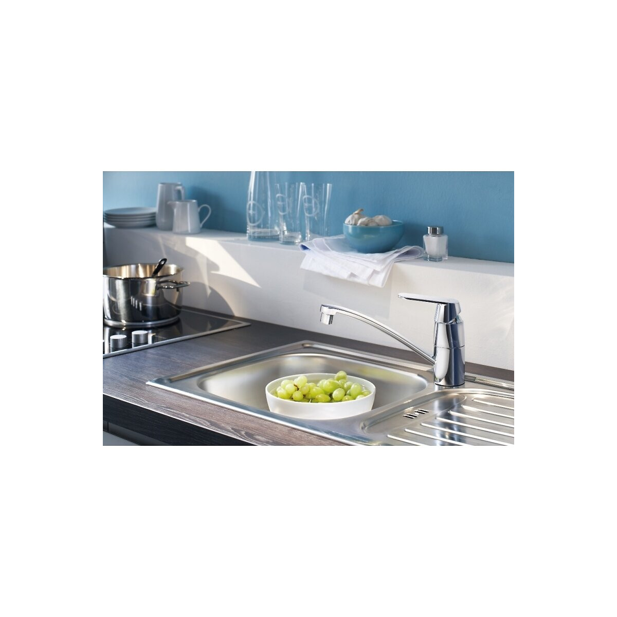 Mitigeur monocommande de cuisine Eurosmart Cosmopolitan 32844000 Qualité et fabrication allemande Monotrou sur plage Cartouche en céramique 35 mm C3 avec butée éco 1/2 débit et ouverture dans l'axe central en eau froide Chrome éclatant et durable Limiteur de débit ajustable Bec tube pivotant Avec butée économique 1/2 débit Mousseur Flexibles de raccordement souples, sertis d'usine PLANETEBAIN.COM VOUS PRÉCONISE: Avant de procéder au montage, nous vous conseillons de purger soigneusement les tuyauteries d'eau chaude et d'eau froide pour éviter que saletés et résidus puissent compromettre la marche de la robinetterie. Nettoyer soigneusement le filetage des tubes d'alimentation d'eau principale. Le mitigeur est utilisable pour des pressions d'alimentation en eau de 1 bar (min) à 5 bars (max). En cas de pression supérieure, nous vous conseillons d'installer un limiteur de pression. Attention : ne pas utiliser de produit abrasif ou tout autre produit acide. Nettoyer votre mitigeur avec de l'eau savonneuse, puis rincer avec une éponge ou un chiffon doux. En cas de calcaire : nettoyer avec de l'eau vinaigrée (vinaigre blanc).