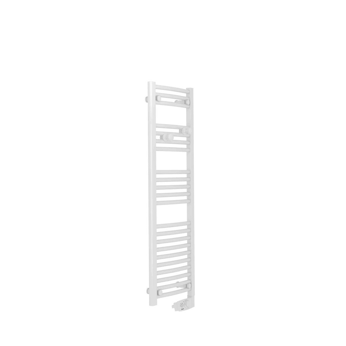 Radiateur sèche-serviettes design à lames plates. Grande capacité de portage. Boitier digital avec affichage permanente de l'heure . Programmation libre. Barre pivotante pour suspendre encore plus de serviettes ou un linge. Livré avec une patère fixe et une patère amovible, idéale pour suspendre un peignoir. Chauffe la salle de bain même recouvert de serviettes (système 3CS). Installation facilitée grâce au gabarit de pose inclus. Fonctionnement silencieux (corps de chauffe huile minérale naturelle). Couleur : Blanc (existe en 4 coloris). Garantie 2 ans avec intervention à domicile.Spécifications techniques