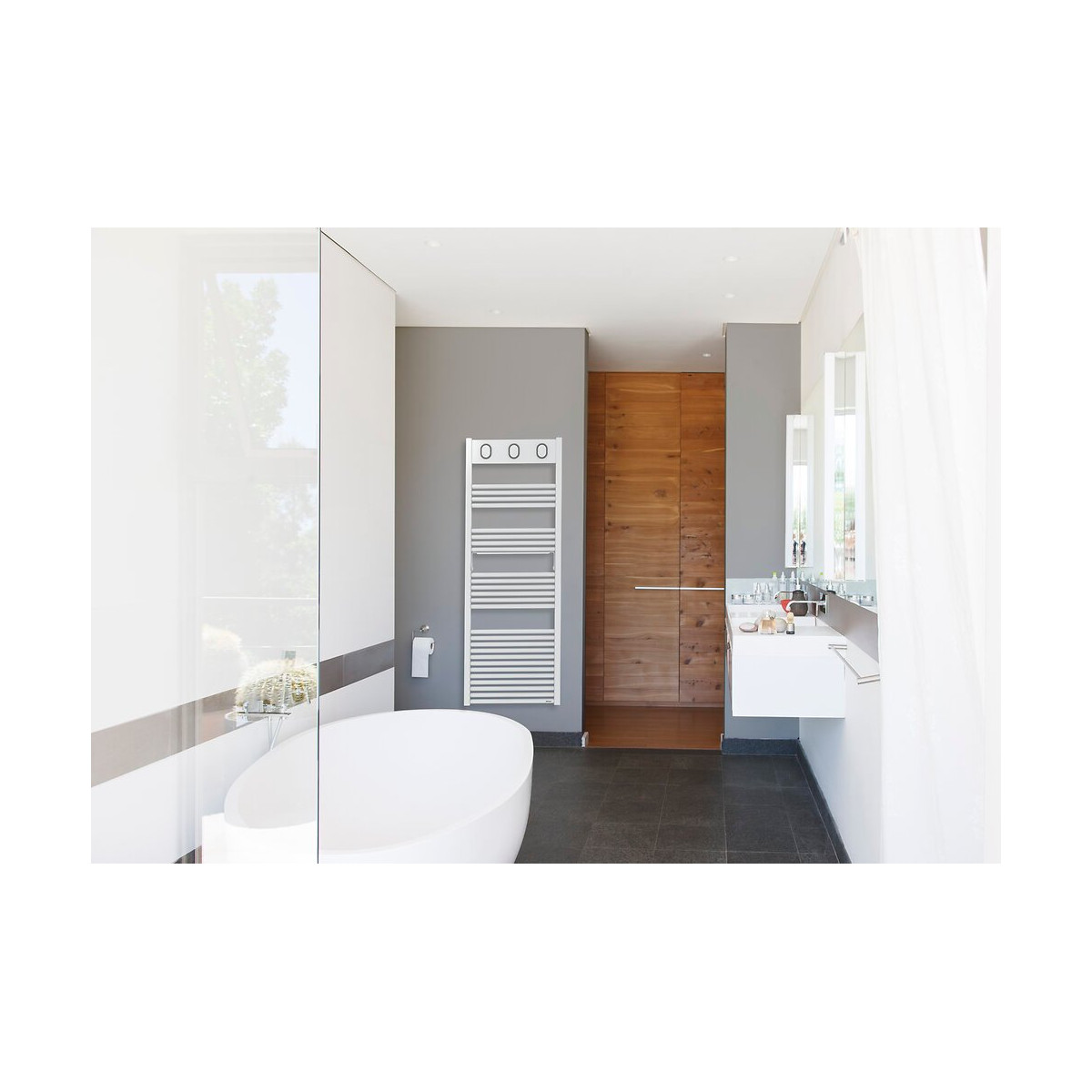 Un radiateur sèche-serviettes pratique avec une installation facile Caractéristiques : Fonctions de portage supplémentaires : 3 patères + 1 barre escamotable Garantie 2 ans pièces et main d'oeuvre + 5 ans le cadre Dimensions : Largeur 50 cm Longueur 139 cm Hauteur 13 cm Poids : 11 kgs