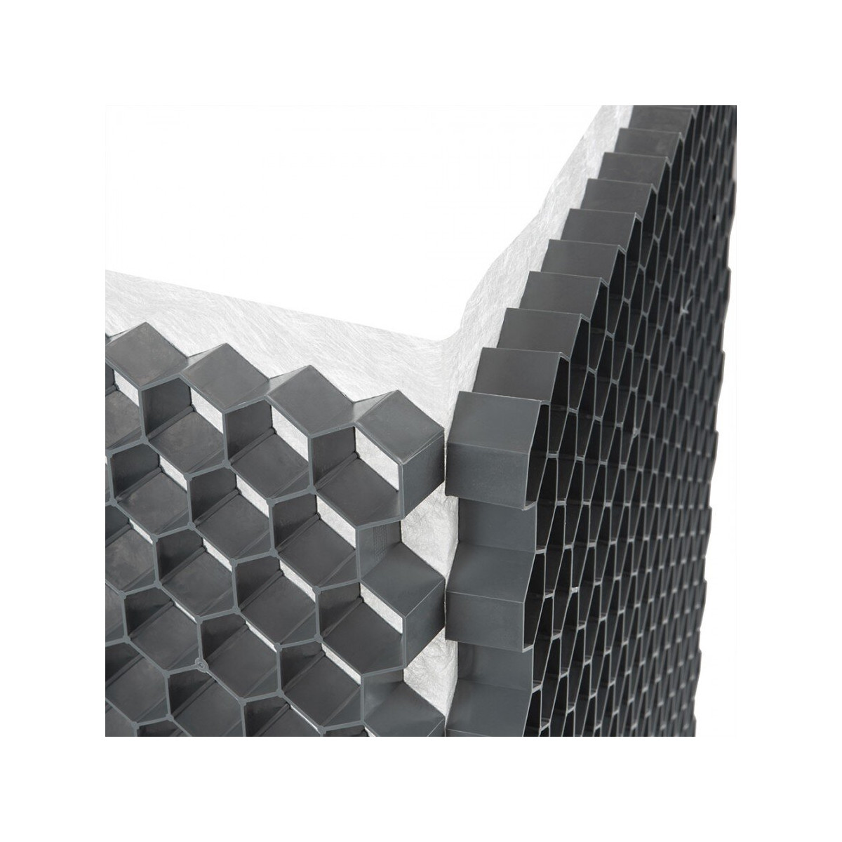 Palette de 33 Stabilisateurs de graviers (63,36 m²) - Gris - 120 X 160 X 3 cm Gris - Rinno Gravel Le stabilisateur de Gravier RINNO vous permet d'aménager vos allées, chemins, et parking de manière économique, fonctionnelle et ésthetique. Cette solution vous permet de maintenir en place votre gravier, évite la formation de flaques d'eau et la pousse de mauvaise herbes grâce au géotextile ultra résistantperméable et thermocolé. Les plaques stabilisatrices de gravier RINNO sont parfaitement adaptées au passage de vehicules motorisés grâce à leur grande résistance à la pression et aux charges de torsion. Les produits RINNO sont testés avec des paramètres de qualité exigents et fabriqués en France de manière éco-responsable. Pourquoi appliquer un revêtement avec stabilisation de gravier RINNO ? Mise en place rapide : économisez les frais de pose Fonction herbicide : demande peu d'entretien Permet l'infiltration des eaux pluviales : un syteme d'évacuation des eaux n'est plus necessaire Prévient la formation d'ornières et de flaques d'eau Stabilité des plaques garantie et grande résistance aux conditons métérologiques Caractéristiques techniques Dimensions : 1200 x 1600 mm Hauteur : 30 mm Surface en m² : 63,36 m² Résistance (vide) : 90 T / m² Résistance (remplie) : 400 T / m² Couleur : Gris Origine : France Structure : Nid d'abeille diamètre 43 mm Matière Geotextile : Polyester résistant thermosoudé Utilisation : Accès PMR