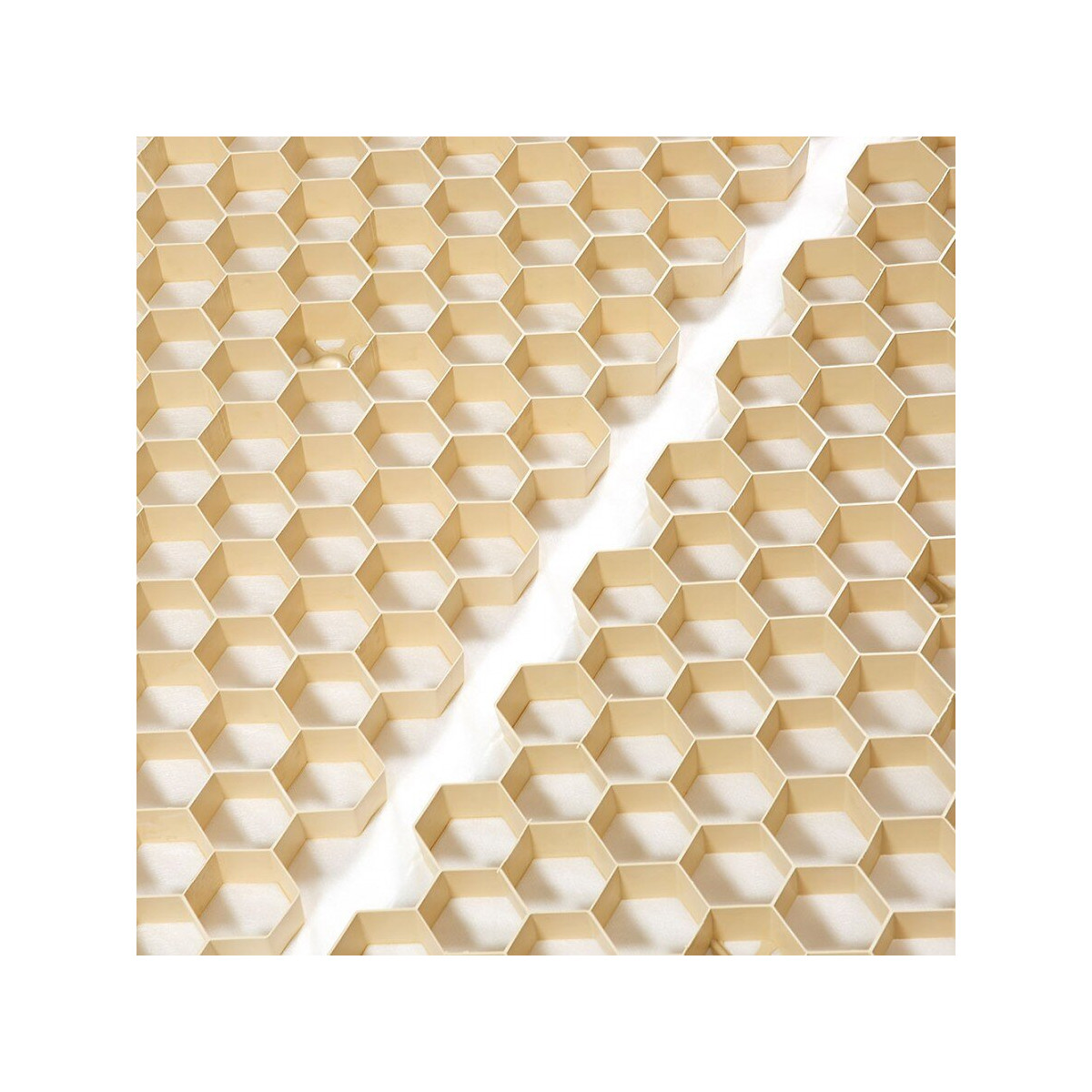 Palette de 71 m² - Stabilisateur de gravier 1200 x 800 mm - Nidaplast - Beige Les plaques stabilisatrice de gravier Nidagravel® sont idéales pour la réalisation de vos allés, votre terrasse ou l'accès à votre garage. Grâce à la structure alvéolaire de ces plaques, le gravier sera parfaitement maintenu. Avantages du stabilisateur de graviers Nidagravel Découpable facilement à la disqueuse Système de pose par fixation simple et robuste Limite le passage des racines et des mauvaises herbes Haute résistance en compression (300 à 400T/m²) Caractéristiques techniques Matière : Polypropylène 100% recyclé Dimensions : 1200 x 800 mm Couleur : Beige Résistance aux agents chimiques : Excellente résistance à l’eau et à la plupart des acides, bases et solutions de sels Stabilité en pente pour voie carrossable : Jusqu’à 15 % de pente