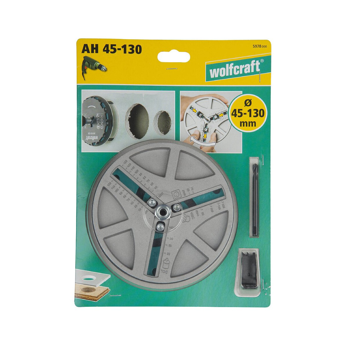 Scie cloche pour perceuses. maximum. RPM 1200 - 1500 diamètre 45 à 65 mm. maximum. RPM 1000 - 1200 RPM maximum. diamètre 66 à 100 mm. maximum. RPM 800 - 1000 RPM maximum. > diamètre 100 mm. Profondeur de coupe 30 mm. Coupes précises et nettes grâce à la géométrie spécifique des dents. Pour plaques de plâtre, bois tendre, panneaux agglomérés, panneaux OSB et contreplaqués. Réglage progressif confortable en 3 étapes : desserrer - ajuster - fixer. 3 graduations intégrées pour toutes les dimensions courantes. Zone de travail protégée par un grand plateau de perçage. Évacuation fiable de la poussière pour un fonctionnement durable du mécanisme de réglage. Une seule scie cloche ajustable selon les projets pour tous les travaux de rénovation intérieurs : plomberie, électricité, VMC, et luminaire. Label TUV.