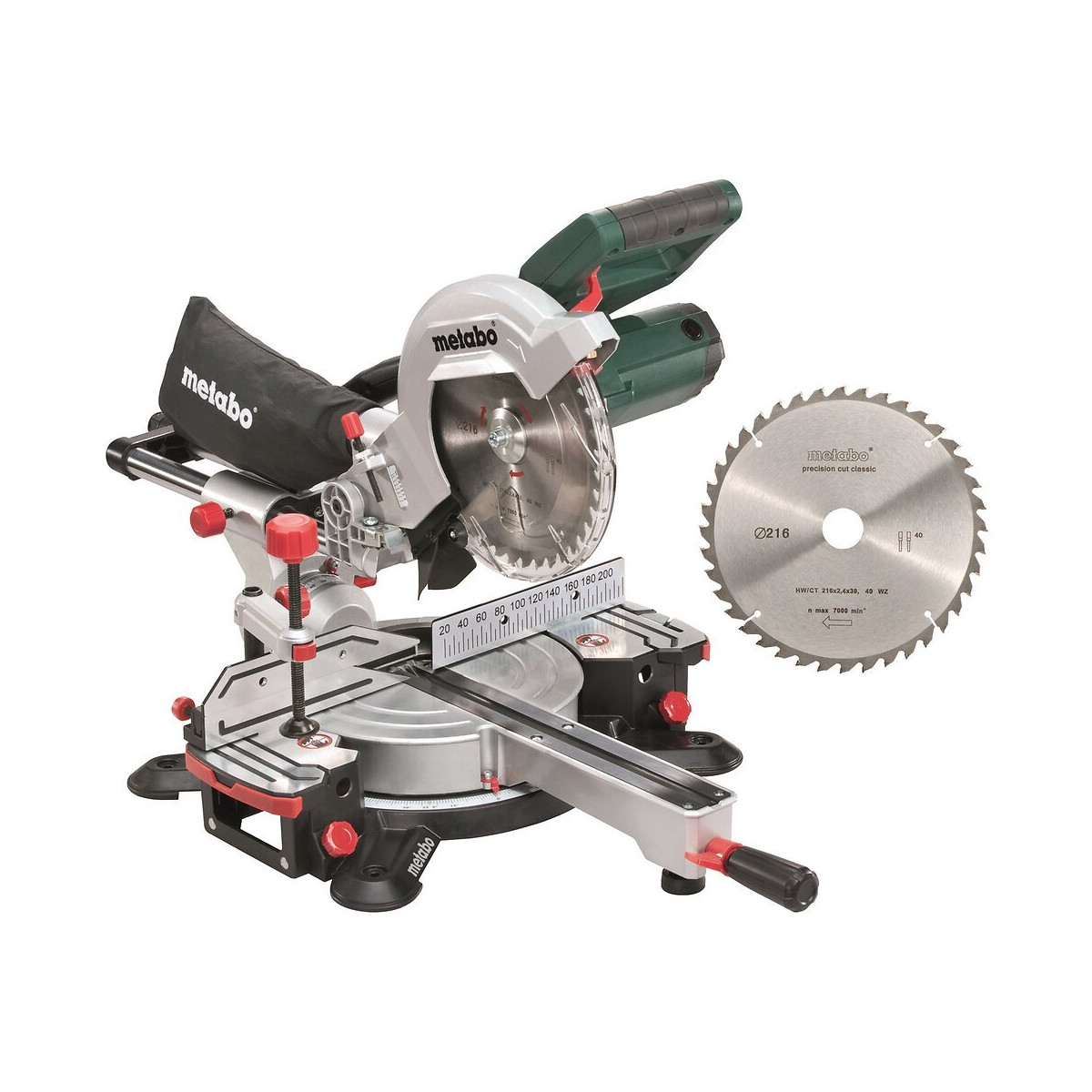Puissance : 1500W Diamètre lame : 216 mm Largeur de coupe : 90/45° : 305/205mm Profondeur de coupe max : 90/45° :65/36mm Réglage du plateau rotatif gauche/droite 47-47° Inclinaison de la lame gauche/droite 47/2°