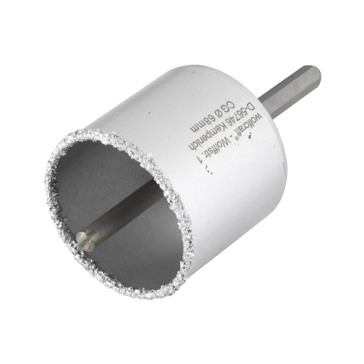 Scie à trépan pour perceuses. maximum. 1.200 RPM. Profondeur de coupe 55 mm. Pour murs de maçonnerie, briques, parpaings creux, plaques de plâtre, carrelage. Pour tous les travaux d'installation (prises, boîtes de dérivation, tuyaux). Convient également pour réaliser des trous jusqu'à 24 cm de profondeur avec la rallonge 3862000. Directement prêt à l'emploi, avec axe et foret CT diamètre 8 mm avec queue 6 pans montés. Label TUV.