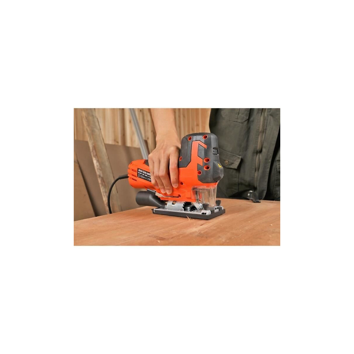 MANUPRO Scie sauteuse électrique filaire - Puissance 800 W - Pendulaire - Lames fournies permettant une profondeur de coupe de 8 (métal) a 80 mm (bois) - Vitesse de rotation : 0-3100 tours par minute - Guidage laser pour un travail de précision - 4 niveaux de réglage - 5 vitesses - Socle inclinable a 45° pour les coupes en biseau - Eclairage LED - Permet de couper bois, plastique, et métal