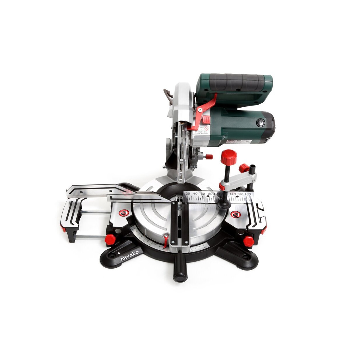 Contenu de la livraison: - 1x Metabo KS 216 M Lasercut Scie à onglets 216mm 1100W ( 619216000 ) - 1x Lame de scie au carbure (40 dents) - 2x Rallonges de table intégrées - 1x Clôture croisée - 1x Pince à matériau - 1x Outil pour changer les lames de scie - 1x Sac de récupération des copeaux Description du produit: La scie à onglets Metabo KS 216 M est légère et compacte et convient également au transport à une main. Il est robuste et fabriqué en aluminium moulé sous pression pour les exigences les plus sévères. Il est facile à transporter grâce à la poignée ergonomique et au verrou de la tête de scie. L'extraction efficace des copeaux est effectuée via l'entonnoir de collecte des copeaux intégré. Les angles communs sont définis rapidement et précisément à l'aide des points de verrouillage. Aucune pile n'est nécessaire, car la scie à tronçonner fonctionne sur secteur. Le laser est utilisé pour l'affichage exact des lignes de coupe. Il contient une lampe de travail LED lumineuse pour éclairer les interfaces. Ses butées hautes et mobiles latéralement garantissent un sciage sûr, car la pince à matériau est utilisée pour fixer solidement la pièce par le dessus ou par l'avant. La tête de scie peut être inclinée vers la gauche afin de couper des zones angulaires supplémentaires par l'arrière. Toutes les échelles et commandes sont visibles depuis la position de travail et peuvent être utilisées de manière intuitive. Le démontage de la protection pendulaire n'est pas nécessaire car les lames de scie peuvent être facilement changées à l'aide du verrouillage de la broche. Spécifications techniques: Dimensions: 475 x 465 x 285 mm Zone d'appui: 155 x 725 mm Largeur de coupe max 90 ° / 45 °: 60/45 mm Capacité de coupe 90 ° / 90 °: 120 x 60 mm Capacité de coupe: 45 ° / 45 °: 80 x 45 mm Réglage du plateau tournant gauche / droite: 47/47 ° Inclinaison de la lame de scie gauche / droite: 47/2 ° Lame de scie: 216 x 30 mm Puissance d'entrée nominale S1 100%: 1100 W Puissance d'entrée nominale S6 20%: 1350 W Régime de ralenti: 5000 / min Vitesse à charge nominale: 3450 tr/min Vitesse de coupe: 57 m/s Poids: 9,4 kg Longueur de câble: 2 m