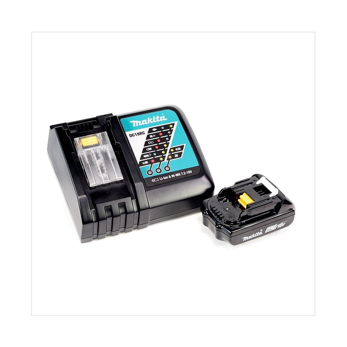 Contenu du paquet: -1x Makita DJV 180 Scie sauteuse à mouvement pendulaire sans fil 18 V -1x Set de lames de scie Makita 6 pcs -1x Raccord d'aspiration -1x Batterie Makita BL 1820 18 V Li-Ion 2 Ah - 2000 mAh (632B42-4) -1x Chargeur rapide Makita DC 18 RC 7,2 V - 18 V pour batterie Li-Ion -1x Coffret de transport Makita MAKPAC 2 -1x Insert universel en mousse Description du produit: Le set DJV 180 Y1J-D de la marque Makita impressionne par son excellent rapport qualité/prix. Il comporte une scie sauteuse à mouvement pendulaire compacte et puissante et une batterie Makita de 2 Ah à charge très rapide. La scie sauteuse DJV 180 à mouvement pendulaire de Makita est dotée d'une base en aluminium inclinable à 45° et d'une vitesse de course réglable en continu. Cette scie fonctionne avec un très faible niveau de bruit et émet peu de vibrations. La LED lumineuse intégrée garantit un éclairage optimal de la zone de travail. Avec le programme de combinaison de batteries de Makita, vous pouvez élargir votre gamme avec d'autres batteries et machines de la gamme Li-Ion 18 V et les associer comme vous le souhaitez. Spécifications techniques: Cadence de coupe max. : 0 - 2 600 min-1 Inclinaison d'angle max. : 45° Capacité de coupe (bois) : 135 mm Capacité de coupe (tube acier) : 10 mm Longueur de course : 26 mm Réglage du mouvement pendulaire : 4 positions