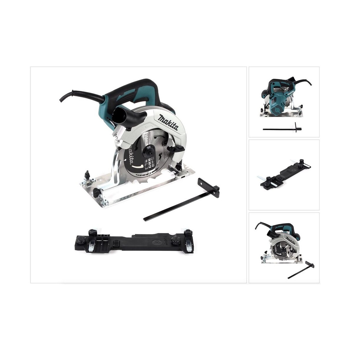 Contenu du paquet: - 1x Makita HS 7611 Scie circulaire portable - 1x Lame de scie carbure - 1x Guide adaptateur de rail Makita C pour Makita HS 7601 et HS 7611( 197462-2 ) - 1x Manuel d'utilisation Description du produit: La Makita HS 7611 est une scie circulaire portable puissante avec un moteur de 1 600 watts. La scie est équipée d'un moteur de grande puissance et a donc une très longue durée de vie. La plaque de base est en aluminium moulé sous pression de haute qualité avec un réglage stable de la profondeur de coupe, qui fonctionne selon le principe des ciseaux. Pour un travail sans poussière, il est possible de connecter une extraction externe à l'appareil. Pour plus de confort, la poignée de forme ergonomique assure. De plus, un rail de guidage peut être connecté via un adaptateur disponible en option. Spécifications techniques: Puissance nominale: 1.600 Watt Vitesse à vide: 5.500 tr/Min Hauteur de coupe maxi. 90°: 66 mm Hauteur de coupe maxi. 45°: 46 mm Diamètre de la lame de scie: 190 mm Diamètre de l'alésage: 30 mm Poids: 3,9 kg Dimensions (L x l x h) en mm: 311 x 240 x 261
