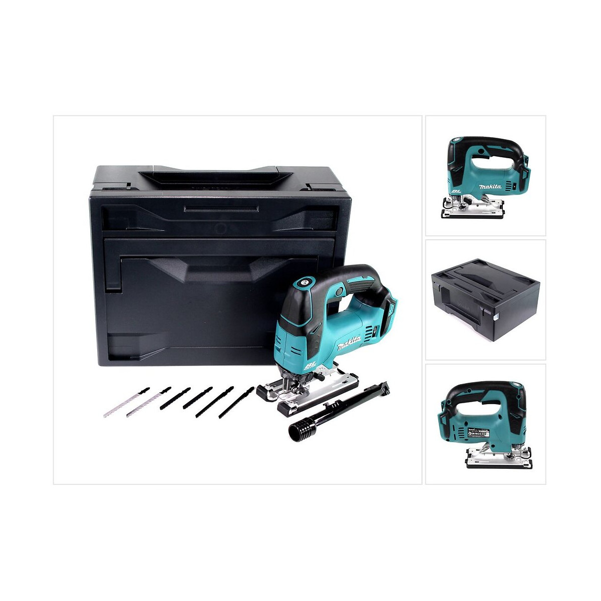 Contenu du paquet: - 1x Makita DJV 182 Scie sauteuse pendulaire sans fil 18V - 1x raccord d'aspiration Makita (126331-0) - 1x semelle protectrice synthétique Makita (417852-6) - 1x pare-éclats Makita (415524-7) - 1x lame de scie Makita bois B-10 (A-85628) - 1x lame de scie Makita BR-13 (A-85793) - 1x lame de scie Makita métal B-22 (A-85737) - 1x Makbox Coffret à outils 400 x 300 x 175 mm - 1x Insert universel - sans Batterie, sans Chargeur Description du produit: La scie sauteuse Makita DJV 182 est légère et compacte grâce au moteur sans balais avec une plus grande robustesse et une durée de vie plus longue. La scie sauteuse pendulaire dispose d’un excellent amortissement des vibrations et un faible niveau sonore. Elle est dotée de 3 réglages de course pendulaire plus la position neutre, l'interface est dépoussiérée avec l'air de refroidissement pour une meilleure visibilité de la pièce. La plaque de base orientable à 45 °des deux côtés et les lames de scie peuvent être changées très facilement et sans outils. La Makbox est un conteneur ingénieux et universel pour le stockage et le transport en toute sécurité d'une grande variété de contenus. La serrure à baïonnette brevetée permet de relier rapidement et en toute sécurité plusieurs boîtes à outils. Le coffret à outils est robuste, stable, équipé d'un couvercle à ressort et d'un système de liaison breveté. La Makbox est utilisée pour le transport des outils en toute sécurité. Spécifications techniques: Makita DJV 182 Scie sauteuse pendulaire sans fil 18V Tension de la batterie: 18 V Nombre de course à vide: 800 - 3.500 min-1 Angle d’onglet max.: 45° Capacité de coupe du bois: 135 mm Capacité de coupe de l’acier: 10 mm Hauteur de levage: 26 mm Dimensions: 266x77x208 mm Poids (sans Batterie): 2,0 kg Coffret à outils Makbox Dimensions: 400 x 300 x 175mm Pour un usage commercial, veuillez respecter les règles de construction!