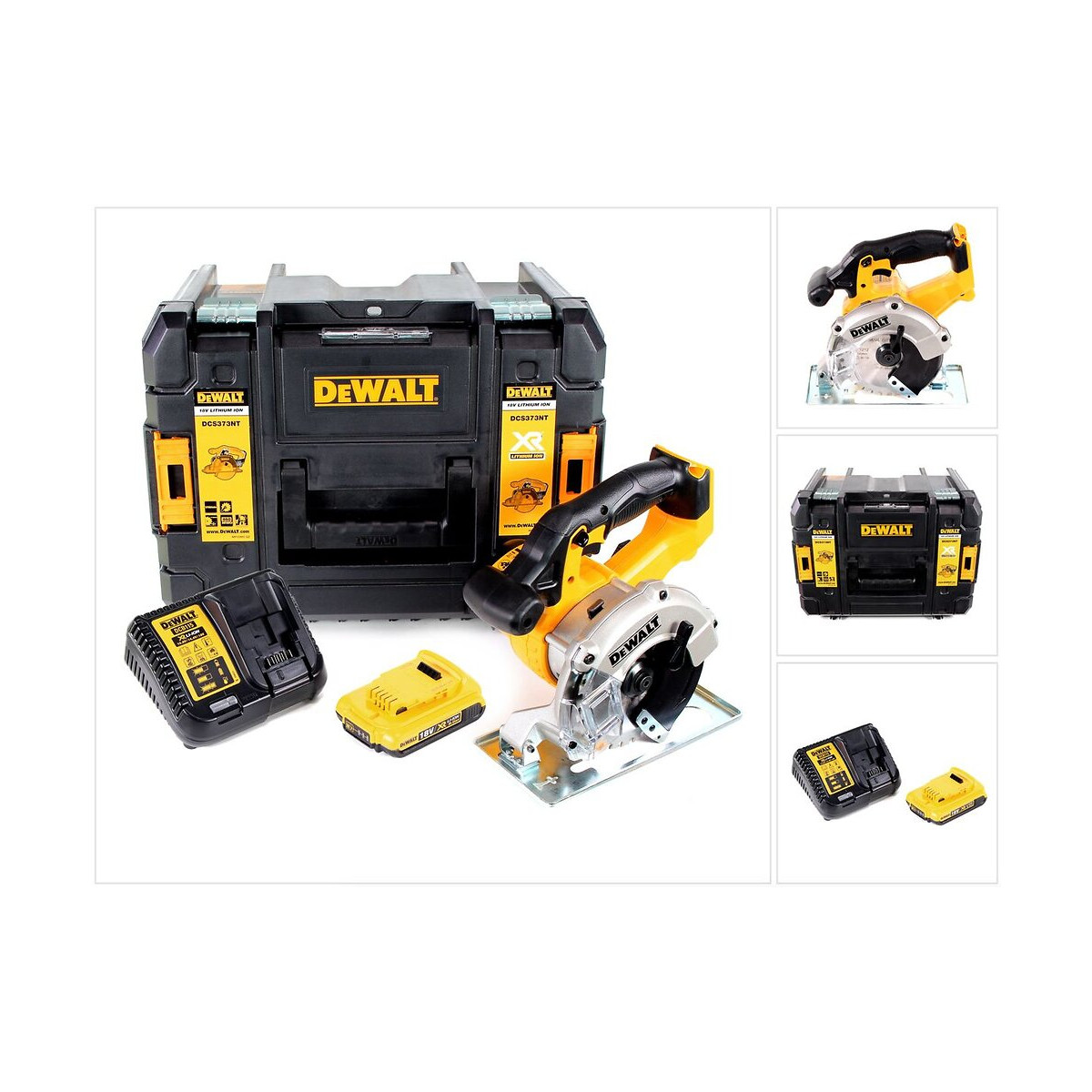 Contenu de la livraison: - 1x Dewalt DCS 373 D1 Scie circulaire sans fil en métal 18V 140 x 20 mm 460W - 1x Lame de coupe en métal DeWalt 140 mm (DT1212) - 1x Coffret de transport TSTAK - 1x Insert - 1x Batterie Li-Ion Dewalt DCB 183 18V / 2,0 Ah - 1x Chargeur Dewalt DCB 113 Description du produit: La scie circulaire sans fil DCS 373 de DeWalt impressionne par son couvercle de protection extrêmement robuste et durable en aluminium moulé sous pression et le sabot de scie en acier inoxydable. Grâce au verrouillage pratique de la broche, la lame de scie peut être changée en quelques secondes. À l'aide de la fenêtre de visualisation dans le capot de protection et de la lame de scie en alliage de tungstène, la DeWalt DCS 373 peut être utilisée pour scier de manière absolument précise et sans bavures. Le frein moteur électronique et l'interrupteur de verrouillage garantissent un processus de travail sûr. Spécifications techniques: Scie circulaire sans fil DeWalt DCS 373 18 V Puissance de sortie: 460 W Vitesse de ralenti: 3700 tr/min Dimensions de la lame de scie: 140x20 mm Profondeur de coupe max.: 43 mm Poids (sans batterie): 2,85 kg Dimensions LxH: 350x210 mm Pression sonore: 78 dB (A) Puissance sonore: 89 dB (A) Type de batterie: 18V Li-Ion Batterie Li-Ion Dewalt DCB 183 18 V / 2,0 Ah Technologie batterie: DE XR Li-Ion Tension de la batterie: 18 V Capacité de la batterie: 2,0 Ah Chargeur Dewalt DCB 113 Tension: 10,8 volts, 14,4 volts et 18 volts Technologie de la batterie: lithium-ion Courant de charge: 3 Ah Longueur: 150 mm Largeur: 120 mm Hauteur: 70 mm Poids: 300 g
