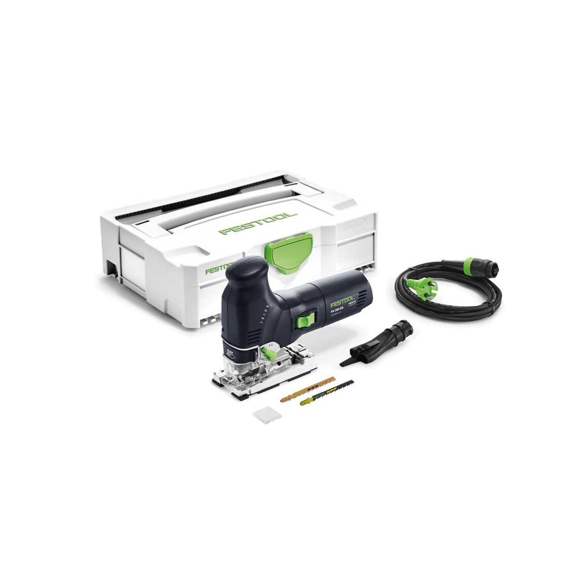 Contenu du paquet: - 1x Festool PSB 300 EQ-Plus TRION Scie sauteuse 720W - 1x Coffret de transport Festool TLOC 1 - 2x Lames de scie - 1x Pare-éclats Description du produit: La scie sauteuse pendulaire TRION est complètement robuste, puissante et ergonomique. Le triple guidage breveté de lame à réglage parallèle des joues en acier au carbure garantit une précision absolue de la lame, le pare-éclats permet d'éviter les retouches. Grâce à son ergonomie parfaite et son centre de gravité idéal, la TRION se laisse guider aisément, même dans une utilisation à une main. Spécifications techniques: Consommation électrique: 720 watts Nombre de coups: 1 000 à 2 900 tr / min Réglage de la course du pendule par étapes: 4 Inclinaison: 0 - 45 ° Profondeur du bois coupé: 120 mm Profondeur de coupe des métaux non ferreux: 20 mm Profondeur de l'acier coupé: 10 mm Niveau de pression acoustique Lp: 83.00 dB (A)