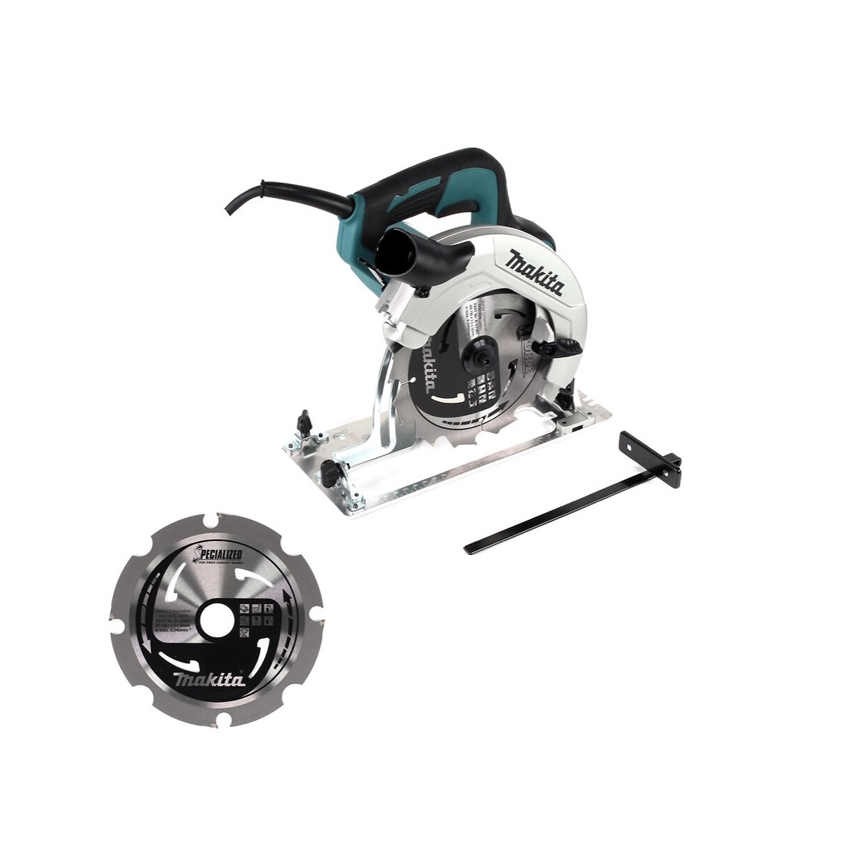 Contenu du paquet: - 1x Makita HS 7611 Scie circulaire portable - 1x Lame de scie carbure - 1x Lame de scie circulaire SPECIALIZED pour fibrociment 190 x 30 x 2,3 mm - 4 dents ( B-33691 ) - 1x Manuel d'utilisation Description du produit: La Makita HS 7611 est une scie circulaire portable puissante avec un moteur de 1 600 watts. La scie est équipée d'un moteur de grande puissance et a donc une très longue durée de vie. La plaque de base est en aluminium moulé sous pression de haute qualité avec un réglage stable de la profondeur de coupe, qui fonctionne selon le principe des ciseaux. Pour un travail sans poussière, il est possible de connecter une extraction externe à l'appareil. Pour plus de confort, la poignée de forme ergonomique assure. De plus, un rail de guidage peut être connecté via un adaptateur disponible en option. Spécifications techniques: Puissance nominale: 1.600 Watt Vitesse à vide: 5.500 tr/Min Hauteur de coupe maxi. 90°: 66 mm Hauteur de coupe maxi. 45°: 46 mm Diamètre de la lame de scie: 190 mm Diamètre de l'alésage: 30 mm Poids: 3,9 kg Dimensions (L x l x h) en mm: 311 x 240 x 261