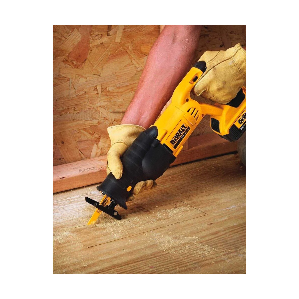 Scie Sabre DeWALT DCS380 - Frein électronique du moteur permettant un meilleur contrôle des coupes - Changement de lame sans clé - Changement de la lame 4 positions - Système breveté unique sur le marché - Semelle pivotante avec ouverture pour permettre une bonne visibilité de la coupe - Ergonomie améliorée