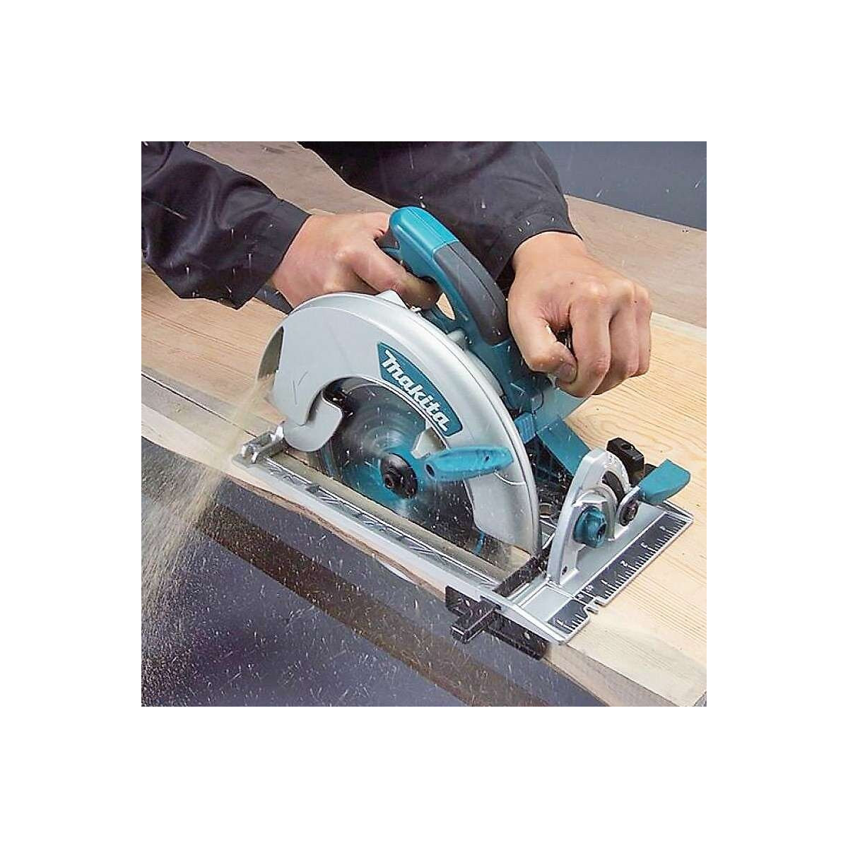 AVANTAGES PRODUIT La scie idéale pour les toituriers et les coffreurs, légère grâce à l'emploi de composantes en alliage de magnésium haute qualité. Machine compacte et solide, sans couteau diviseur et à capot renfermé. Equipé d'un moteur performant à puissance débitée maximale de 2300W, qui confère à la lame 210mm une vitesse periférique élevée et une capacité de coupe impressionnante. Excellente vue sur l'avant de la lame aussi bien à gauche qu'à droite; le capot est ajouré des deux côtés, le double éclairage DEL illumine la lame et un jet d'air puissant élimine toute sciure du trait de coupe. Corps de machine à côté plat et clé allen rangée sur la machine facilitant l'échange de la lame. Très confortable à utiliser grâce à la forme et la disposition ergonomiques des poignées, au centre de gravité parfaitement balancé et au revêtement caoutchouté des organes de commande. Inclinable jusqu'à 50° avec butée de présélection pour un réglage rapide et précis des angles les plus courants de 22.5° et 45°. Graduations nettes et surdimensionnées assurant un réglage facile et rapide de la profondeur et de la largeur de coupe; des largeurs jusqu'à 11cm peuvent être découpées à l'oeil à l'aide de l'échelle sur l'avant de la semelle. CARACTERISTIQUES TECHNIQUES Puissance nominale absorbée (P1) 1800 Watt Puissance nominale débitée (P2) 1000 Watt Puissance débitée maximale 2300 Watt Régime à vide maximal 5200 t.p.m. Profondeur de coupe maximale à 90° 75,5 mm Profondeur de coupe maximale à 45° 57 mm Profondeur de coupe maximale à 50° 51,5 mm Diamètre de la lame 210 mm Diamètre de l'alésage 30 mm Taux de vibration triaxial (ah) 3 m/s² Vibration 3ax coupe de bois (ah) 3 m/s² Marge d'incertidude vibration (K) 1,5 m/s² Emission sonore (LWA) 106 dB(A) Pression sonore (LpA) 95 dB(A) Marge d'incertidude bruit (K) 3 dB(A) Dimensions (Lo x La x H) 332 x 243 x 277 mm Poids sans câble (EPTA 01/2003) 5,1 kg ACCESSOIRES 1 coffret MAKPAC type IV 1 lame 24 Dents pour scies circulaires à main STANDARD 1 guide parallèle 1 raccord pour aspiration de poussières 1 clé à six pans 6x90mm Vendu avec une lame suplémentaire de Construction 14 Dents B-27246