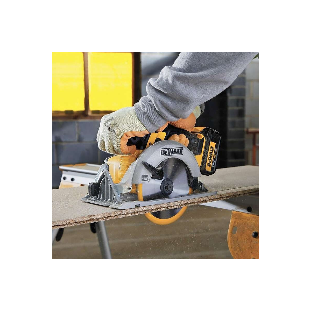 CARACTÉRISTIQUES DE LA SCIE CIRCULAIRE Dernière génération de Scie Circulaire 18V dotée de la nouvelle technologie XR (eXtreme Runtime) Gamme XR: Efficacité et durabilité accrue Moteur DEWALT PM58, refroidi par ventilateur, avec des charbons remplaçables, animant une lame de 165mm de diamètre et assurant une avance de coupe constante à une profondeur de 55mm Poignée ergonomique qui augmente le contrôle et le confort lors de l‘utilisation de la machine Conception extrêmement durable avec une semelle en alliage de magnésium et un carter de lame entièrement métallique pour mieux résister aux conditions d‘utilisation sur chantier Nouvel interrupteur offrant une variation intelligente de la vitesse et un meilleur contrôle Grande semelle avec lame positionnée à droite offrant un bon contrôle de la machine et une bonne visibilité du trait de coupe Blocage d‘arbre pour un changement rapide et simple de la lame Frein électronique du moteur pour un meilleur contrôle et plus de sécurité La lame carbure 24 dents de 165mm de diamètre, avec un trait de coupe très fin, permet de réaliser des coupes rapides et de bonne qualité FR-Improved erganomic design and rubber grip increase comfort Chargeur multi-voltage pour batterie 18V, 14.4V, 10.8V SPÉCIFICATIONS DE LA MACHINE Type de batterie FR XR Li-Ion Voltage 18 Volts Capacité Batterie 3/4/5.0Ah Diamètre de la lame 165 mm Puissance utile 460 Watts Vitesse à vide 3700 tr/min Inclinaison de la lame 50 ° Profondeur de coupe maximale à 90° 55 mm Profondeur de coupe maximale à 45° 42.1 mm Poids 3.8 kg Longueur 360 mm Hauteur 240 mm Livré avec : - Scie Circulaire DCS391 - Lame Carbure 165mm (Alésage 20mm) - Buse d'extraction de poussière - Clé Allen Sans Batterie ni chargeur Garantie XR de 3 ans sur les outils Après enregistrement de votre machine sur le site : www.dewalt.fr, dans les 4 semaines suivant l'achat. Batterie et chargeur = 1 an Garantie