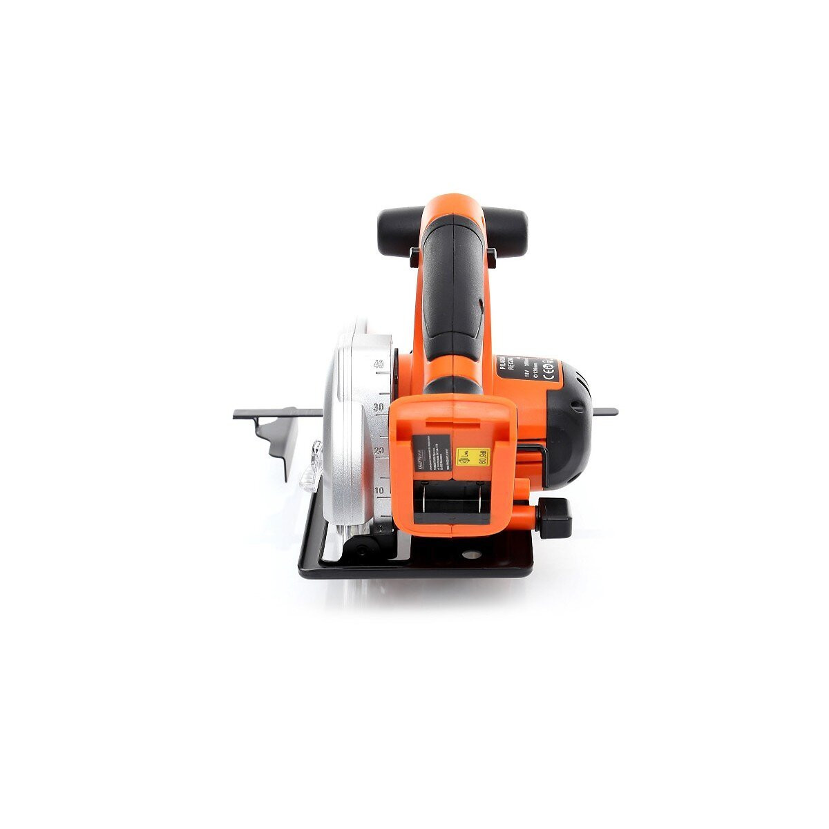 La scie circulaire à main est un appareil haut de gamme destiné non seulement aux bricoleurs à domicile, mais aussi aux professionnels. L'appareil est fabriqué en aluminium et en plastique de haute qualité, largement recouvert de caoutchouc HIGH GRIP, assurant une prise en main sûre et sécurisée dans toutes les conditions. La scie est équipée d'une protection de la lame, ce qui garantit la sécurité nécessaire lorsque l'appareil n'est pas utilisé. Pour un travail confortable et précis, la scie est équipée d'un régulateur d'angle, d'une règle et de poignées stables. Le bouton de verrouillage a été positionné pour plus de commodité et de facilité d'utilisation. Protège-lame robuste en aluminium moulé sous pression durable.; CARACTÉRISTIQUES TECHNIQUES: Type d'appareil : Scie circulaire; Alimentation : 18V; Batterie: 4000 mAh; Vitesse : 3800 RPM; Lame: 136mm x 10mm; Profondeur de coupe à 90° : 38 mm; Profondeur de coupe à 45° : 28mm; Réglage de l'angle : 0 - 50°; Dimensions de la base : 230 x 127 mm; Dimensions : 240 x 330 x 160 (H x L x P); Poids : 2,1 kg (sans batterie)