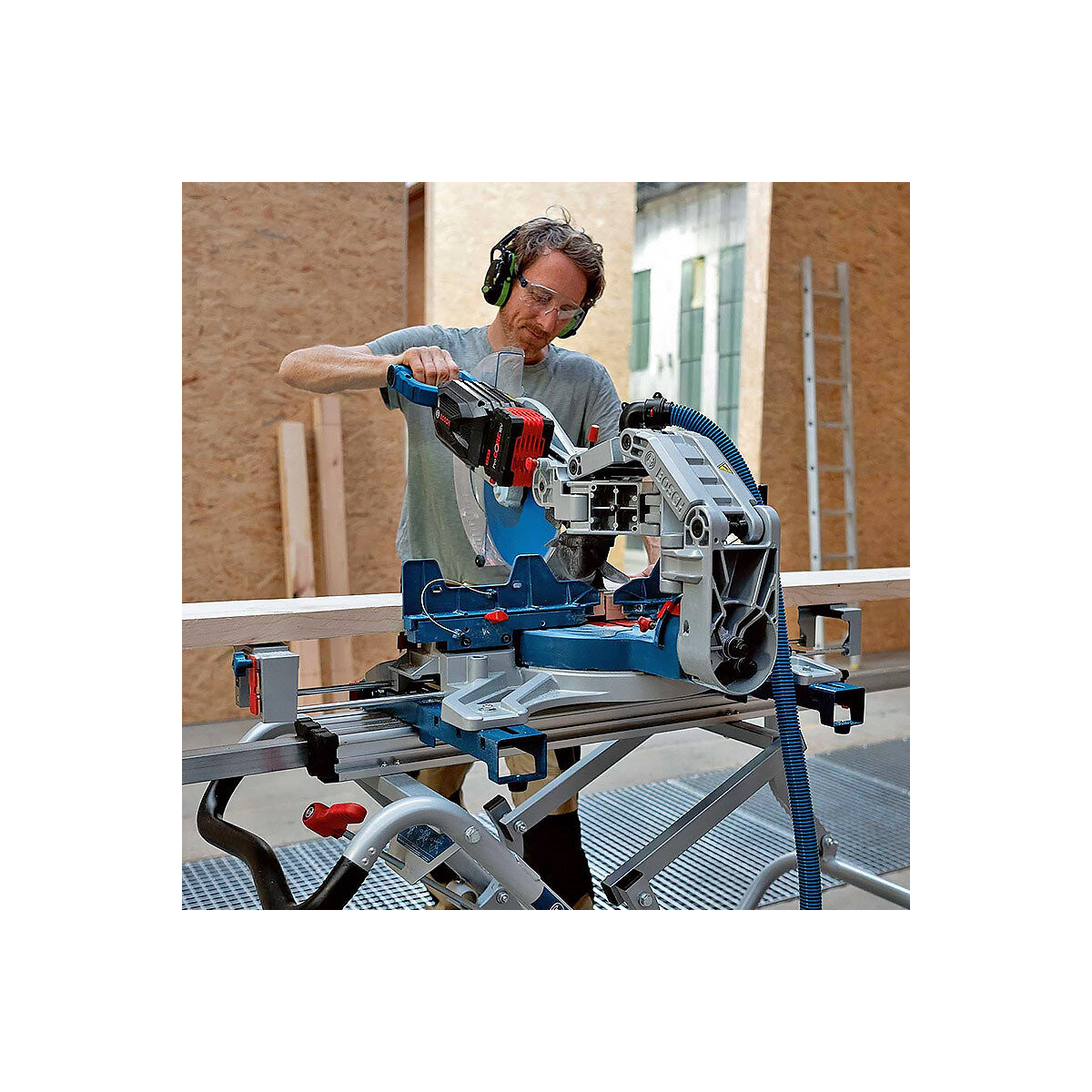 Avantages produit Scie à onglets sans-fil BITURBO BOSCH GCM18V-305 GDC Professional La combinaison parfaite entre très bonnes performances de coupe et liberté du sans-fil Puissance sans-fil équivalente à 2 000 W en filaire grâce au moteur sans charbon alimenté par une batterie ProCORE18V Écran de contrôle et fonction de connectivité pour vérifier l'état de charge de la batterie ; présélection de vitesse et mode ECO Changement de lame sans outil ; réglage d'inclinaison par l'avant ; frein moteur ; bras coulissant peu encombrant pour une utilisation sûre et pratique La puissante scie à onglets radiale sans fil BITURBO GCM 18V-305 GDC Professional a une capacité de coupe de 120 mm. Optimisée pour la technologie ProCORE18V, le moteur sans charbon de la scie à onglets offre une puissance équivalente à celle d'un modèle filaire de 2 000 W. Elle dispose d'un écran de contrôle et d'une fonction de connectivité permettant de vérifier rapidement l'état de charge de la batterie ainsi que d'une présélection de vitesse et d'un mode ECO. Des fonctions telles que changement de lame sans clé, réglages d'onglets/d'inclinaisons situés à l'avant et frein moteur assurent une grande sécurité d'utilisation. L'outil est idéal pour les coupes d'onglets doubles et pour une grande variété de matériaux. La scie peut être fixée sur de nombreux supports GTA Bosch. La scie à onglets offre les meilleures performances avec les batteries ProCORE18V mais peut aussi être utilisée avec toutes les batteries 18 V Bosch. La GCM 18V-305 GDC Professional permet de disposer d'une puissance très élevée avec une seule batterie, même pour les applications exigeantes. La présélection de vitesse et la gamme très complète de lames de scie Bosch rendent cette scie à onglets utilisable pour quasiment tous les matériaux Caractéristiques produit Scie à onglets sans-fil BITURBO BOSCH GCM18V-305 GDC Professional Capacité de coupe 0° 104 x 341 mm Capacité de coupe 0° avec entretoise (verticale maxi) 120 x 200 mm Capacité de coupe 0° avec entretoise (horizontale maxi) 45 x 400 mm Capacité de coupe onglet 45° 104 x 240 mm Capacité de coupe inclinaison 45° 40 x 341 mm Coupe d'onglet 52 ° G / 60 ° D Réglage d'inclinaison 47 ° G / 47 ° D Dimensions de l'outil (longueur x largeur x hauteur) 565 x630 x790 mm Régime à vide 2.550 – 4.000 t/min Ø de la lame de scie 305 mm Diamètre de la lame de scie 30 mm Poids 26,9 kg Tension de la batterie 18 V Dimensions de l'emballage (longueur x largeur x hauteur) 565 x 785 x 580 mm Accessoires 1 lame de scie sans-fil, Expert for Wood, 305 x 2,2 /1,6 x 30 mm, 60 : 2 608 644 528 Sac à poussière : 1 600 A01 ZE5 Serre-joint : 1 609 B02 585 Six pans creux : 1 609 B00 256 Pare-éclats : 1 609 B02 375 1 module Bluetooth Low Energy GCY 42 Professional : 1 600 A01 6NH
