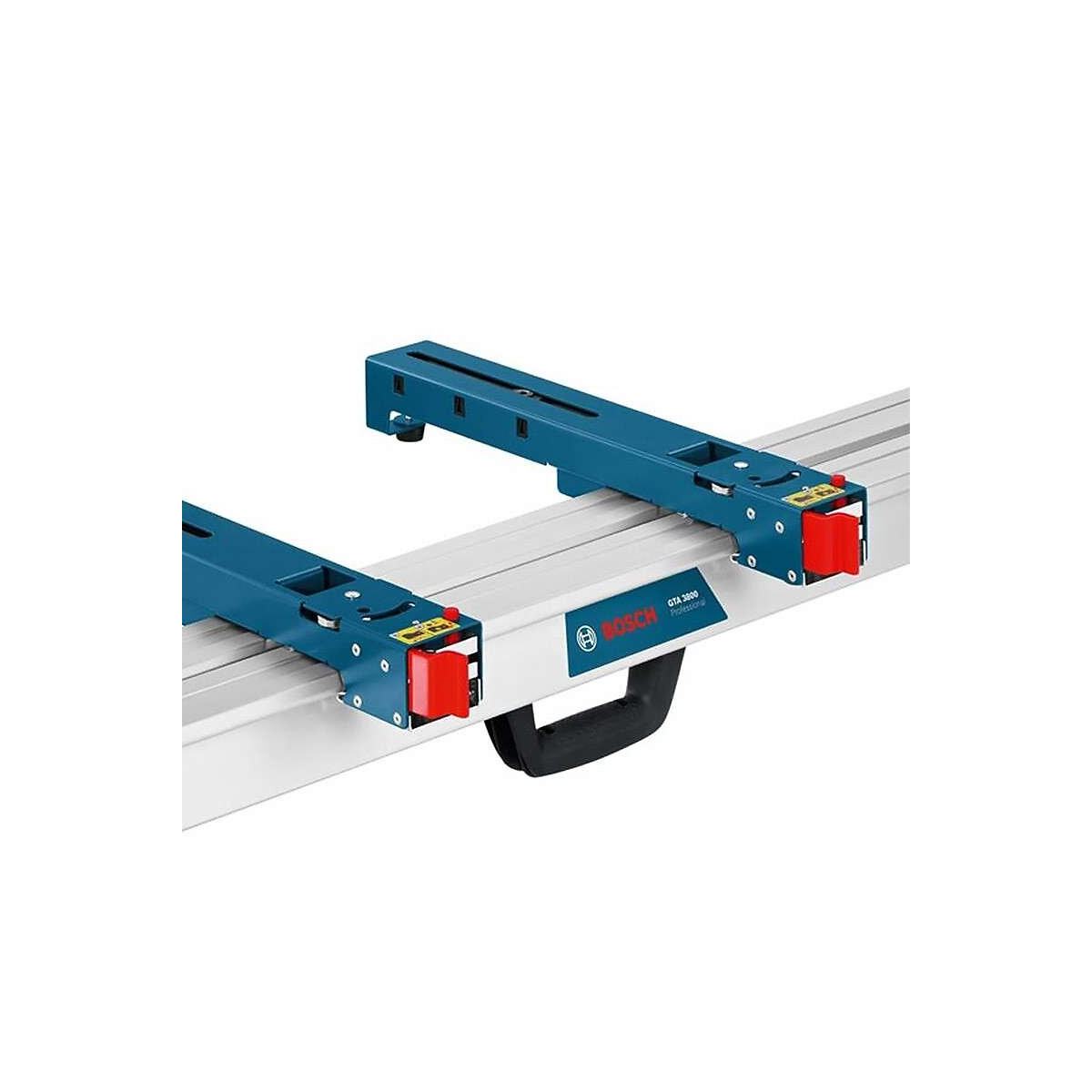 AVANTAGES PRODUIT Table de travail BOSCH GTA 3800 Professional Un support de travail flexible pour les pièces de grande longueur Flexibilité n° 1 : supports de pièce réglables individuellement avec butée pour un usinage précis des pièces de grande longueur Flexibilité n° 2 : compatibilité avec la quasi-totalité des scies à onglets et radiales et scies à onglets à table supérieure Flexibilité n° 3 : transport facile grâce à sa légèreté et à la poignée de transport ergonomique CARACTERISTIQUES TECHNIQUES Table de travail BOSCH GTA 3800 Professional Longueur de la table de travail 1 578 mm Poids avec/sans accessoires 22,3 / 18,9 kg Longueur table de travail avec rallonge 3 877 mm Hauteur table de travail 824 mm Dimensions de la table pliée 1578 x 140 x 190 mm Capacité de charge, maxi 250 kg ACCESSOIRES Support machine Clé Tablettes d'appui avec plateau à roulettes et butée longitudinale