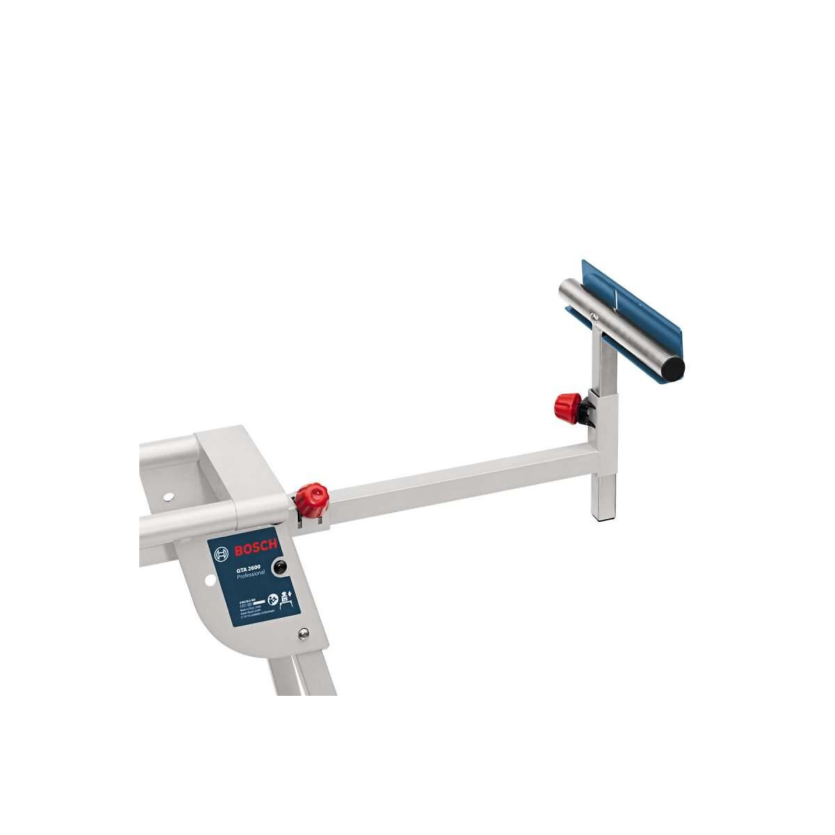 AVANTAGES PRODUIT Flexibilité illimitée : le nouveau concept de mobilité pour les appareils stationnaires 1 - Pour toutes les scies à onglets Bosch Professional 2 - Retrait rapide et sans clé de la scie pour un transport facile 3 - Longueur maximale de 2 600 mm avec les deux rallonges latérales déployées CARACTERISTIQUES TECHNIQUES Longueur sans rallonge: 1220 mm Longueur avec rallonge: 2620 mm Hauteur: 820 mm Charge max.: 160 kg Poids: 19,6 kg