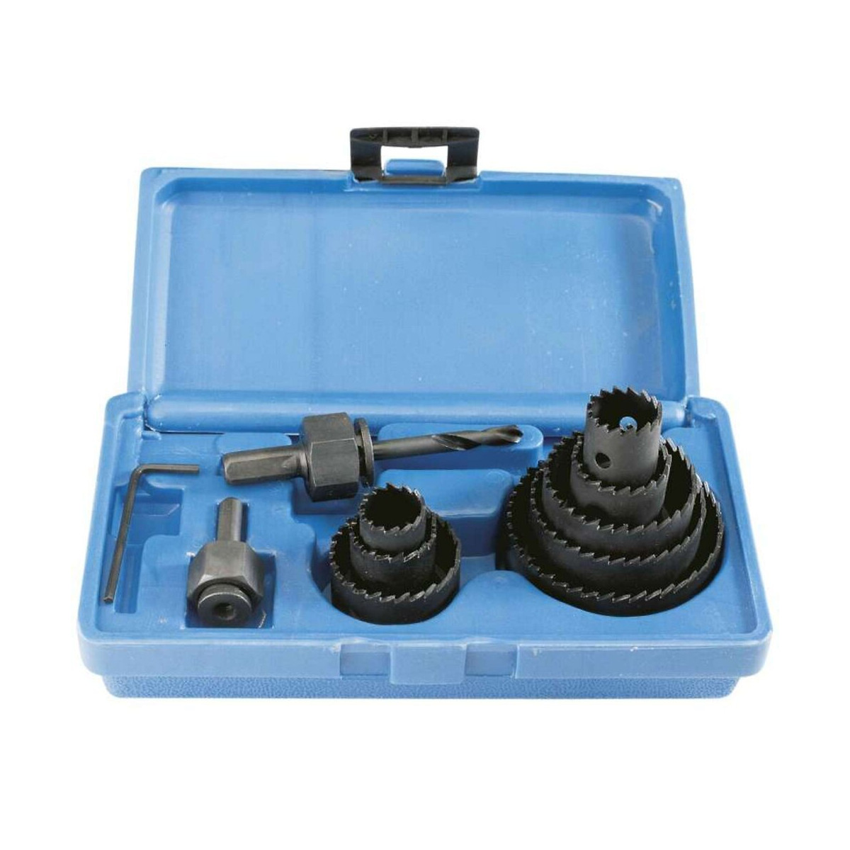 Ce kit comprend:8 lames en acier traité2 portes lames1 clé de serrage.Diamètre des lames: 19, 22, 29, 32, 38, 44, 51 et 64 mm