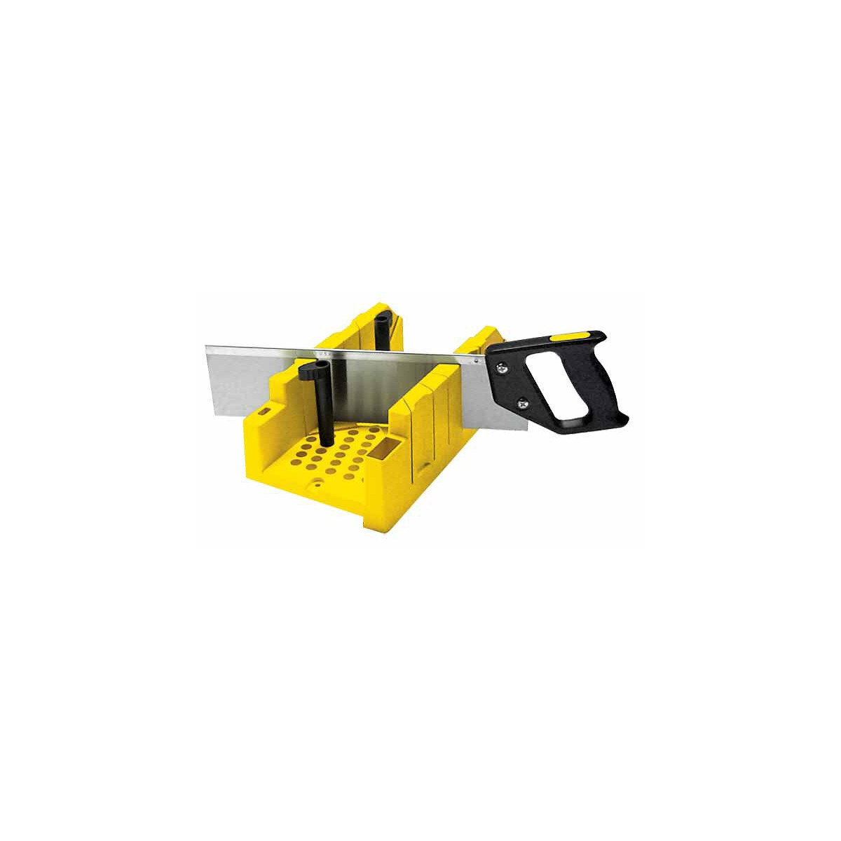déale pour les travaux sur baguettes, tasseaux, moulures, tubes, ... Boîte à onglets en plastique ABS très résistante 4 angles de coupe : 90°, 45°, 22.5° et coupe inclinée 45° Semelle surélevée pour un travail en butée Plateau alvéolé avec cadre excentrique pour le blocage des pièces à couper Point d'ancrage pour permettre la fixation sur l'établi de travail Cornières rabattables en caoutchouc antidérapantes pour travailler à palt ou en butée contre son plan de travailSpécifications techniques