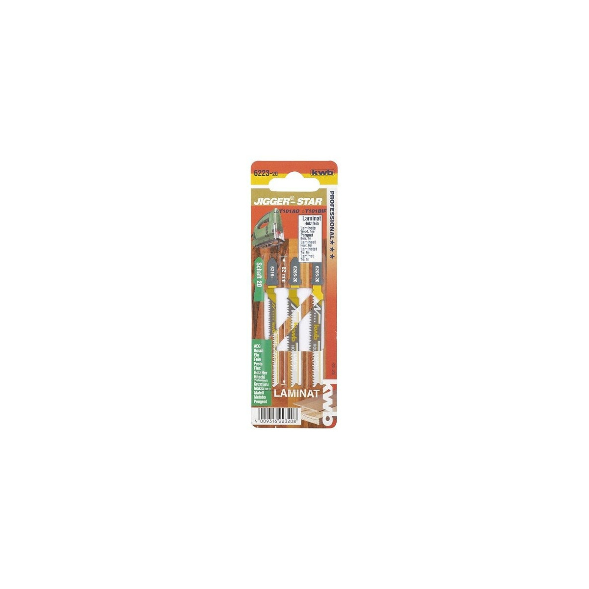Lames de scies sauteuses LAMINES, angle de dépouille affûté, bimétal et HCS. Spécialement conçues pour les laminés extrêmement durs, même les parquets, stratifiés. 2 lames fines T101BIF 1 lame courbe T101AO Pour AEG, Atlas Copco, Bosch, Dewalt, Elu, Festo, Feiin, Flex, Hitachi, Holz-Herr, Hilti, Kress, Makita, Metabo, Mafell, Skil, Bosch-Multisagen, Peugeot
