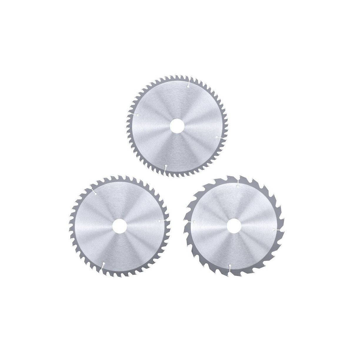 Kit de trois lames de scie aux carbures de tungstène haute qualité Ces lames de scie ont un diamètre de 210 mm et une épaisseur de 30 mm. Avec 1 lame de scie 24 dents, 1 lame de scie 42 dents et 1 lame de scie 60 dents