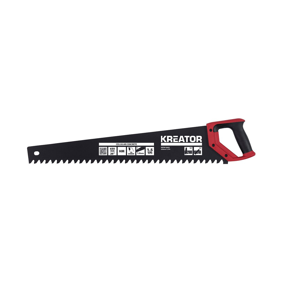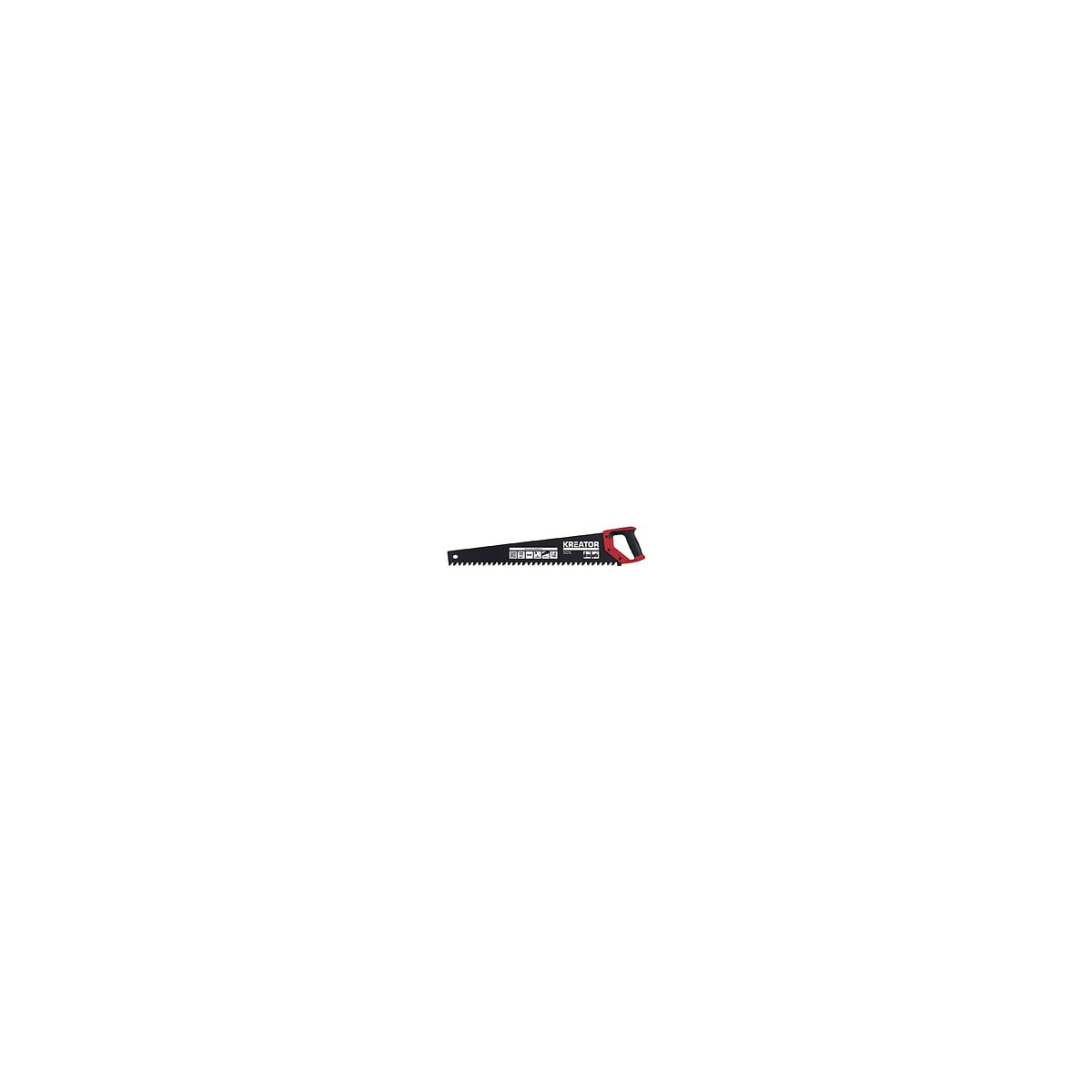 Lame en acier avec peinture laquée de protection noire anti-corrosion. Une dent sur deux avec pastille au carbure de tungstène. Poignée ergonomique bi-matière vissée. Pour la coupe des bétons cellulaires, briques légères, pierres tendres et carreaux de plâtre. Longueur : 650 mm