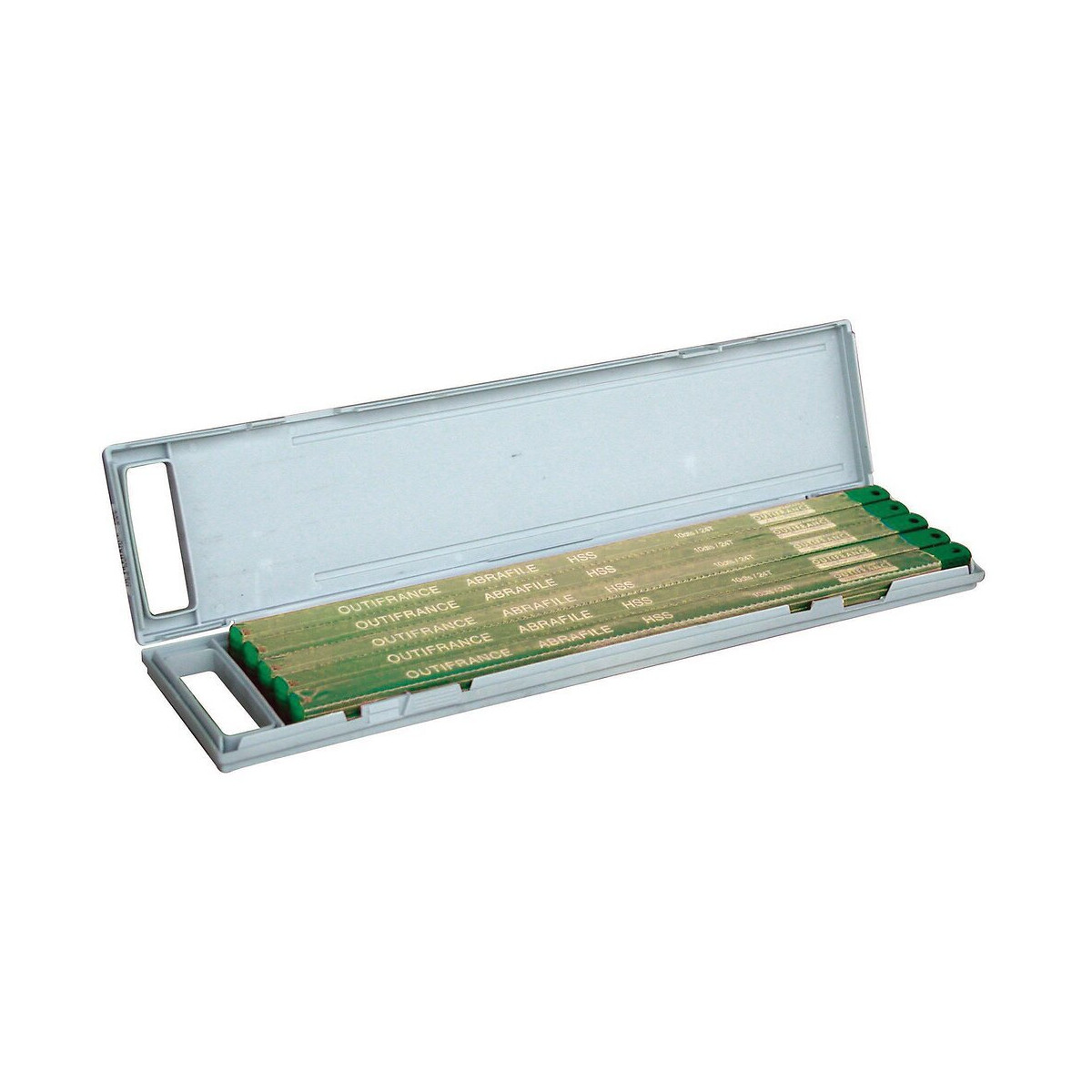 Pour la coupe de lacier doux, laluminium, le laiton, les métaux tendres. Longueur : 300 mm. Boîte de 100 lames.