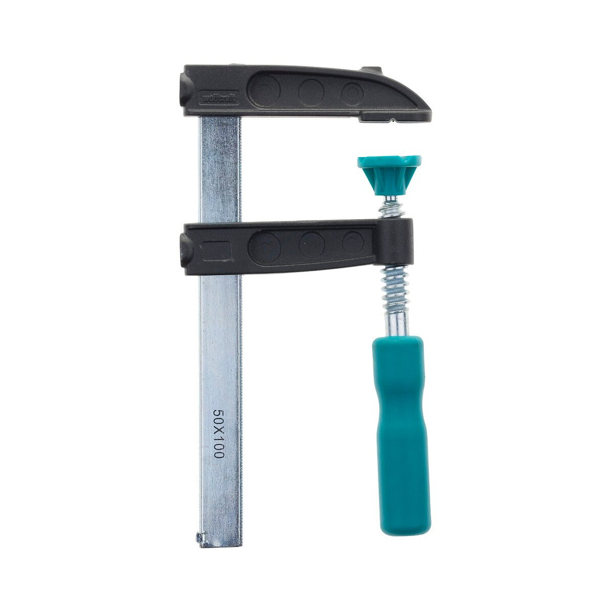 Serre-joint à vis Saillie 50 mm. Ouverture jusqu'à 100 mm. Pour tout type de travaux. Profilé plein robuste avec crantage antidérapant sur les deux côtés. Bras de serrage supérieur à surface stable -idéal pour les collages. Axe métal galvanisé à filetage rapide trapézoïdal. Bras de serrage en zinc spécial coulé sous pression. Patin de serrage mobile en polyamide renforcé à la fibre de verre.