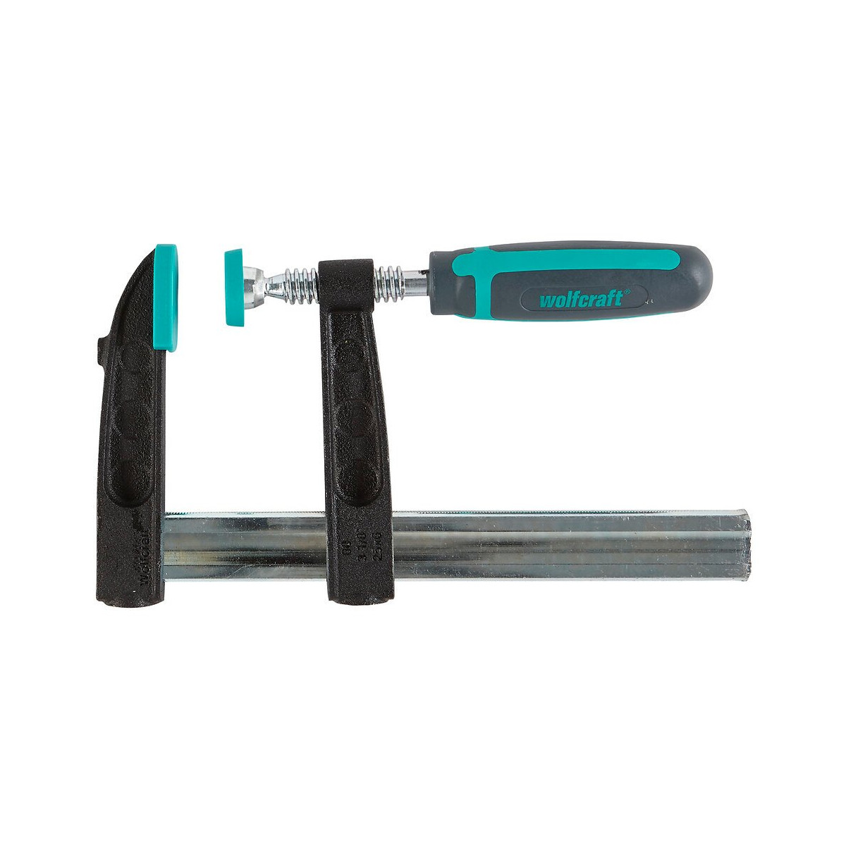 Serre-joint à vis Saillie 80 mm. Ouverture jusqu'à 150 mm. Pour tout type de travaux. Particulièrement pratique au collage : la nouvelle géométrie du bras de serrage offre une surface d'appui plane sur le dessus du mors ainsi qu'au dos en position couchée : un atout très utile. Zinguée et de haute qualité, la tige à profil creux ne se voile pas même sur une longue portée de serrage. Poignée de forme ergonomique à revêtement antidérapant pour une meilleure transmission de la force. Axe métal galvanisé à filetage trapézoïdal pour une transmission optimale de la force. Sans glissement ou desserrage intempestif : les bords crantés sur les deux côtés garantissent un blocage fiable. Fabrication européenne.