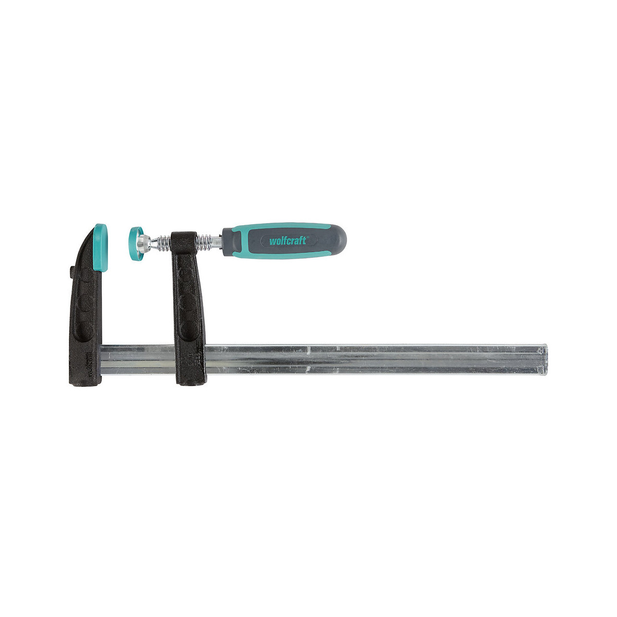 Serre-joint à vis, saillie 80 mm. Ouverture jusqu'à 300 mm. Pour tout type de travaux. Particulièrement pratique au collage : la nouvelle géométrie du bras de serrage offre une surface d'appui plane sur le dessus du mors ainsi qu'au dos en position couchée : un atout très utile. Zinguée et de haute qualité, la tige à profil creux ne se voile pas même sur une longue portée de serrage. Poignée de forme ergonomique à revêtement antidérapant pour une meilleure transmission de la force. Axe métal galvanisé à filetage trapézoïdal pour une transmission optimale de la force. Sans glissement ou desserrage intempestif : les bords crantés sur les deux côtés garantissent un blocage fiable. Fabrication européenne.