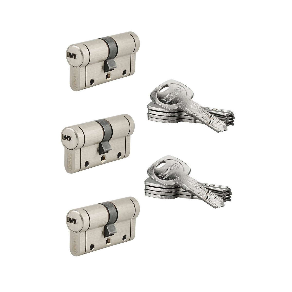 Lot 3 cylindres 12 goupilles nickelé 30x30mm 10 clés