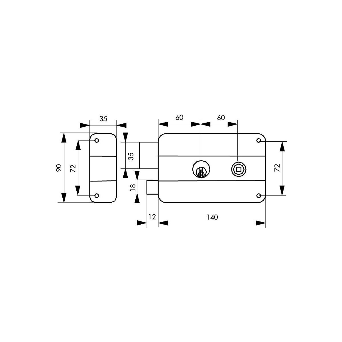 Destination: Porte d'entrée Forme de la serrure: Horizontale Ouverture de la porte: A gauche Ouverture de la serrure par: Poignée Tirant / poussant: Tirant Couleur: Noir Matière du coffre: Acier Traitement anticorrosion: Non Type de clé: Clé crantée Nombre de clés: 3 Accessoires fournis: Vis de fixation Cylindre fourni: Oui Pêne réversible: Non Gâche fournie: Non Hauteur de la gâche (en mm): 90 Largeur de la gâche (en mm): 35 Entraxe de fixation hauteur de la gâche (en mm): 57 Epaisseur maximum de la porte (en mm): 45 Entraxe (en mm): 70 Section du carré (fouillot) (en mm): 6 Largeur du coffre (en mm): 140 Hauteur du coffre (en mm): 90 Epaisseur du coffre (en mm): 20 Entraxe de fixation hauteur du coffre (en mm): 72 Produit emballé : hauteur (en cm): 21.3 Produit emballé : largeur (en cm): 24.3 Produit emballé : profondeur (en cm): 9.9 Produit emballé : poids (en kg): 1.136