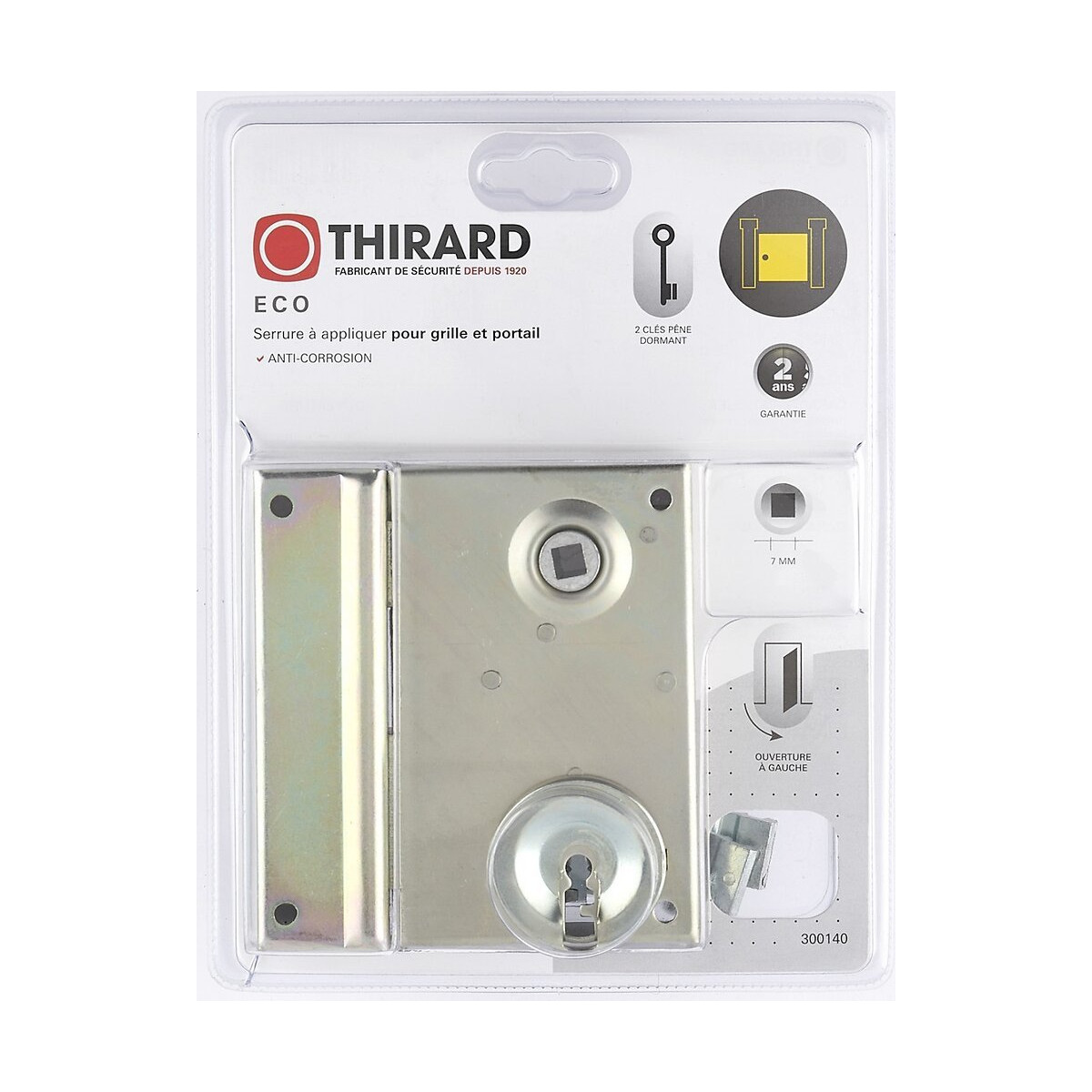 Destination: Portail ou grille Forme de la serrure: Verticale Ouverture de la porte: A gauche Ouverture de la serrure par: Poignée Tirant / poussant: Tirant Matière du coffre: Acier Traitement anticorrosion: Oui Type de clé: Clé à chiffre Nombre de clés: 2 Accessoires fournis: Vis + gabarit Cylindre fourni: Non Pêne réversible: Non Gâche fournie: Oui Hauteur de la gâche (en mm): 70 Largeur de la gâche (en mm): 70 Entraxe de fixation hauteur de la gâche (en mm): 60 Epaisseur maximum de la porte (en mm): 50 Entraxe (en mm): 70 Section du carré (fouillot) (en mm): 7 Largeur du coffre (en mm): 110 Hauteur du coffre (en mm): 70 Epaisseur du coffre (en mm): 20 Entraxe de fixation largeur du coffre (en mm): 55 Entraxe de fixation hauteur du coffre (en mm): 95 Produit emballé : hauteur (en cm): 20.6 Produit emballé : largeur (en cm): 16.2 Produit emballé : profondeur (en cm): 7.9 Produit emballé : poids (en kg): 0.698