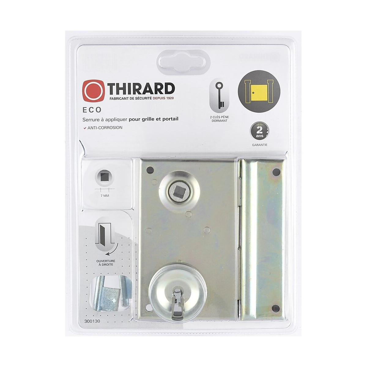 Destination: Portail ou grille Forme de la serrure: Verticale Ouverture de la porte: A droite Ouverture de la serrure par: Poignée Tirant / poussant: Tirant Matière du coffre: Acier Traitement anticorrosion: Oui Type de clé: Clé à chiffre Nombre de clés: 2 Accessoires fournis: Vis de fixation Cylindre fourni: Non Pêne réversible: Non Gâche fournie: Oui Largeur de la gâche (en mm): 70 Entraxe de fixation hauteur de la gâche (en mm): 60 Epaisseur maximum de la porte (en mm): 50 Entraxe (en mm): 70 Section du carré (fouillot) (en mm): 7 Largeur du coffre (en mm): 110 Hauteur du coffre (en mm): 70 Epaisseur du coffre (en mm): 20 Entraxe de fixation largeur du coffre (en mm): 55 Entraxe de fixation hauteur du coffre (en mm): 95 Produit emballé : hauteur (en cm): 20.7 Produit emballé : largeur (en cm): 16.2 Produit emballé : profondeur (en cm): 8.1 Produit emballé : poids (en kg): 0.68