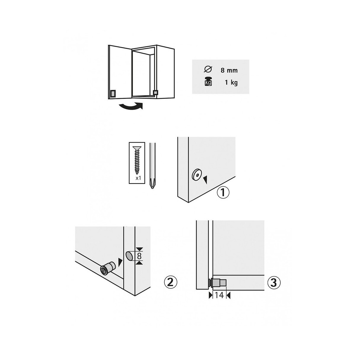 Destination: Pour meuble Force de l'aimant (en kg): 1 Finition du produit: Brut Poids du produit nu (en kg): 0.016 Fixation: A larder Usage du produit: Verrouiller Matière principale: Plastique Hauteur (en mm): 35 Longueur (en mm): 14 Largeur (en mm): 35 Diamètre (en mm): 8 Produit emballé : hauteur (en cm): 9.1 Produit emballé : largeur (en cm): 6.6 Produit emballé : profondeur (en cm): 3.1 Produit emballé : poids (en kg): 0.016 Indication du geste de tri (triman): Nos produits et emballages peuvent faire l'objet d'une consigne de tri. Pour en savoir plus : www.quefairedemesdechets.fr