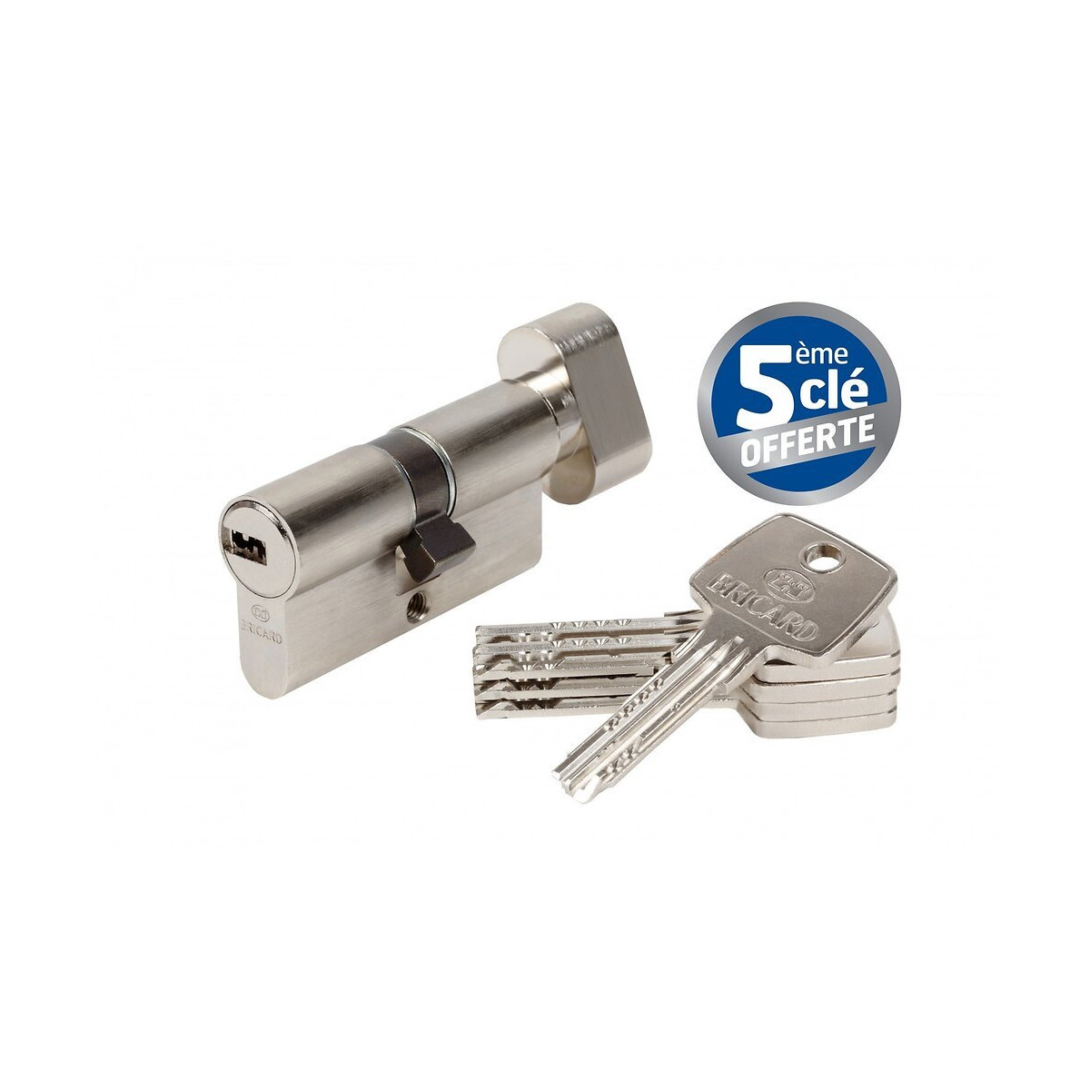 5 clés réversibles. Cylindre laiton nickelé 10 pistons. Protections contre le perçage. Protections contre le crochetage. Carte personnelle. Taille du cylindre (extérieur et intérieur) (en mm): 30 + 30 Destination: Pour porte d'entrée donnant directement sur la rue Niveau de sécurité (en indice): 3 Nombre de goupilles: 10 Longueur du cylindre (en mm): 30+30 Fonction confort: Bouton Type de cylindre: 1 entrée de clé et 1 bouton Matière du cylindre: Laiton nickelé Résistance accrue à la corrosion: Oui Conseil d'entretien: Pour la pose: une fois le cylindre installé, vérifier le bon fonctionnemment du mécanisme avant de fermer la porte. Pour l'entretien: utiliser régulièrement du graphite pour éviter le grippage de votre cylindre. Ne jamais utiliser d'huile ou de corps gras Nombre de clés: 5 Mode de reproduction de la clé: Les clés peuvent être reproduites sans justificatif à l'aide de la clé d'origine Antiperçage: Oui Anticrochetage: Oui Anticasse: Non Système antibumping: Non Produit emballé : hauteur (en cm): 17.8 Produit emballé : largeur (en cm): 11.8 Produit emballé : profondeur (en cm): 4.8 Produit emballé : poids (en kg): 0.34