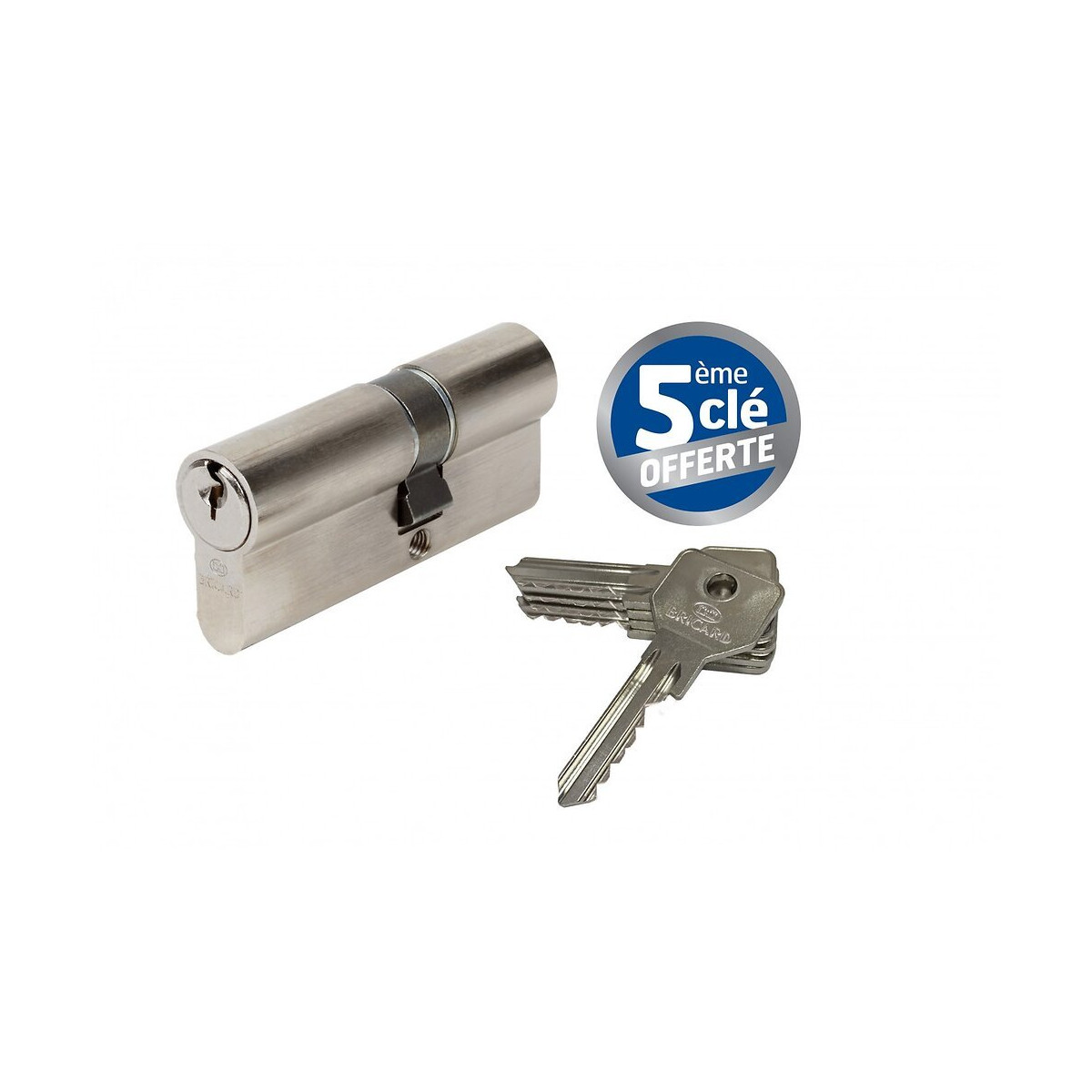 5 clés. Cylindre débrayable : ouvertures simultanées. Cylindre 5 pistons. Bonne résistance à l'usure et à la corrosion. Protections contre le crochetage. 5 clés. Taille du cylindre (extérieur et intérieur) (en mm): 30 + 40 Destination: Pour porte d'entrée donnant directement sur la rue Niveau de sécurité (en indice): 2 Nombre de goupilles: 10 Longueur du cylindre (en mm): 30+40 Fonction confort: Débrayable Type de cylindre: 2 entrées de clé Matière du cylindre: Laiton nickelé Résistance accrue à la corrosion: Oui Conseil d'entretien: Pour la pose: une fois le cylindre installé, vérifier le bon fonctionnemment du mécanisme avant de fermer la porte. Pour l'entretien: utiliser régulièrement du graphite pour éviter le grippage de votre cylindre. Ne jamais utiliser d'huile ou de corps gras Nombre de clés: 5 Mode de reproduction de la clé: Les clés peuvent être reproduites sans justificatif à l'aide de la clé d'origine Antiperçage: Non Anticrochetage: Oui Anticasse: Non Système antibumping: Non Produit emballé : hauteur (en cm): 11.9 Produit emballé : largeur (en cm): 11.9 Produit emballé : profondeur (en cm): 4.4 Produit emballé : poids (en kg): 0.284