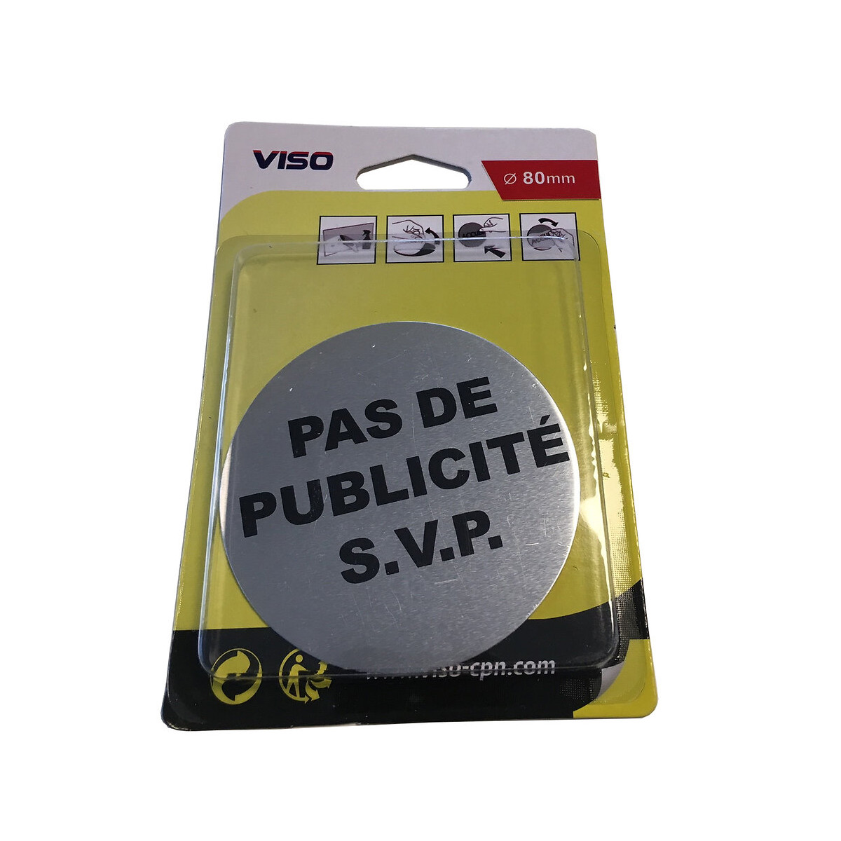 Panneau PAS DE PUBLICITE aluminium adhésif diamètre 80 mm VISO