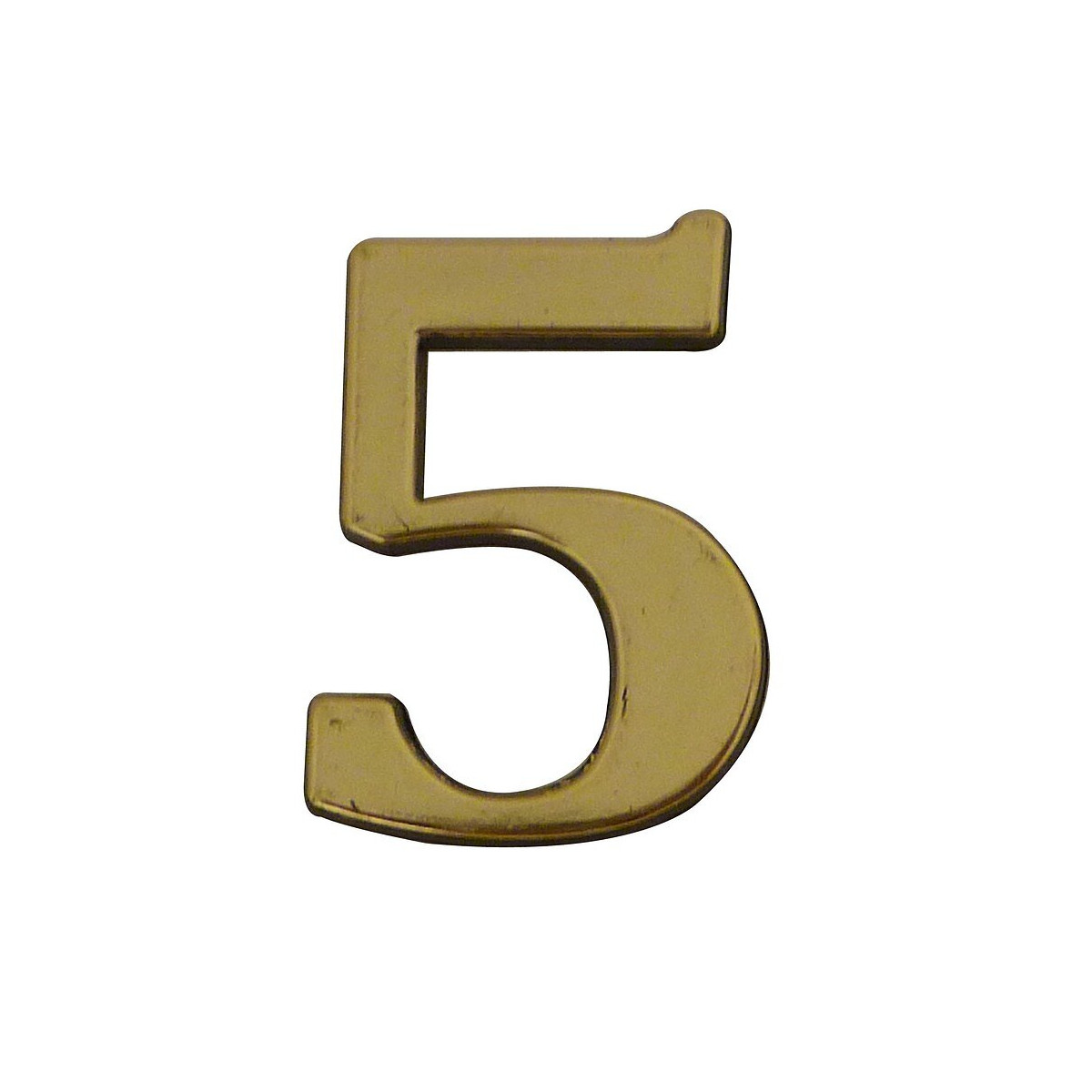 Chiffre 5 adhésif en plastique laitonné Marque VISO Couleur : doré Hauteur : 40 mm