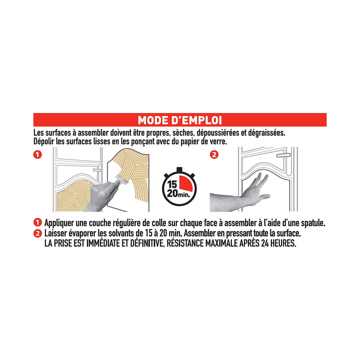 Haute tenue à la chaleur, super puissante et prise immédiate Tous types de placages. Durcisseur incorporé. Nom du produit: Colle néoprène gel Indication du geste de tri (triman): Non