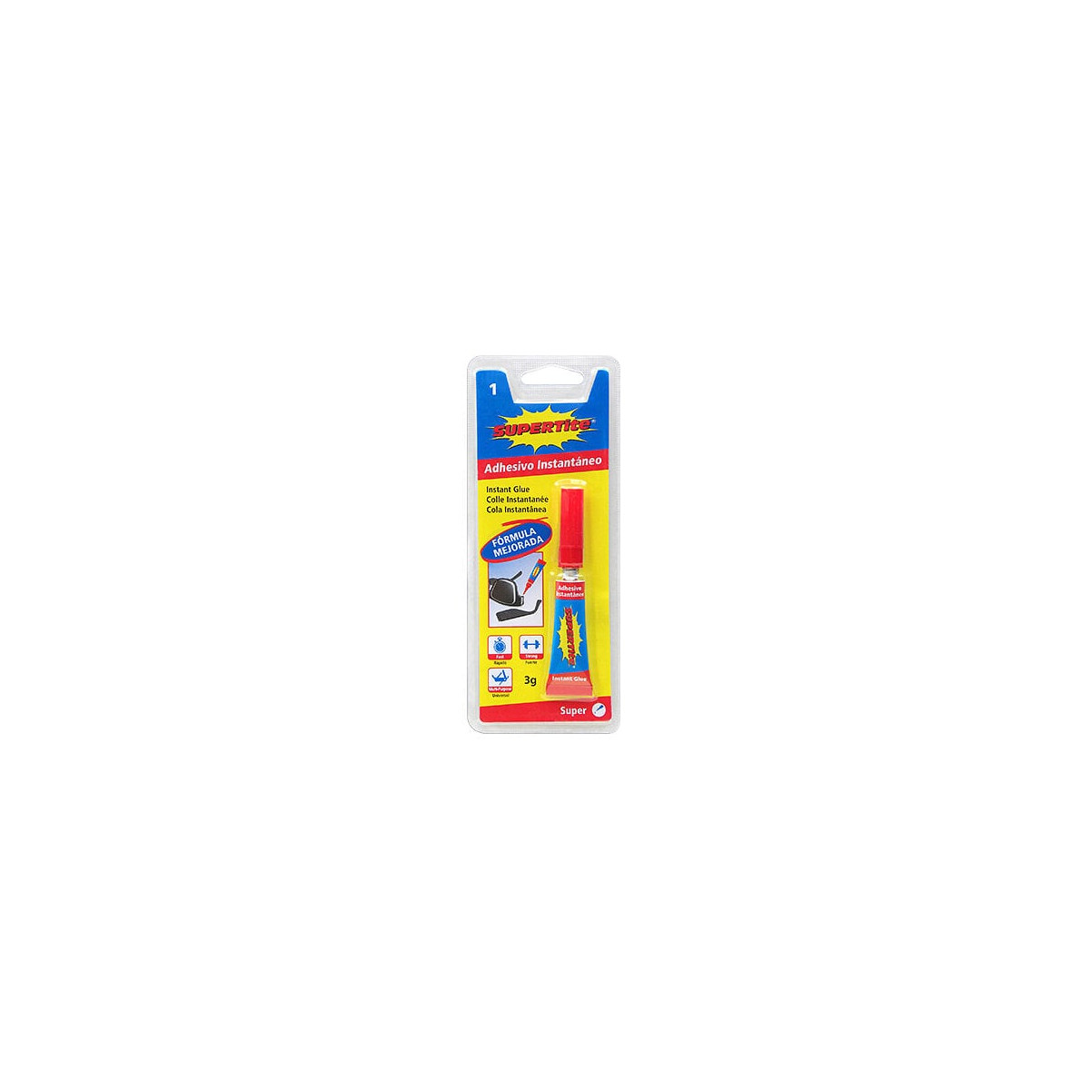 Colle puissante à séchage très rapide. Pour céramique, porcelaine, verre, caoutchouc, plastique, bois, carton, papier, métal, cuir, ... Tube de colle liquide 3 g
