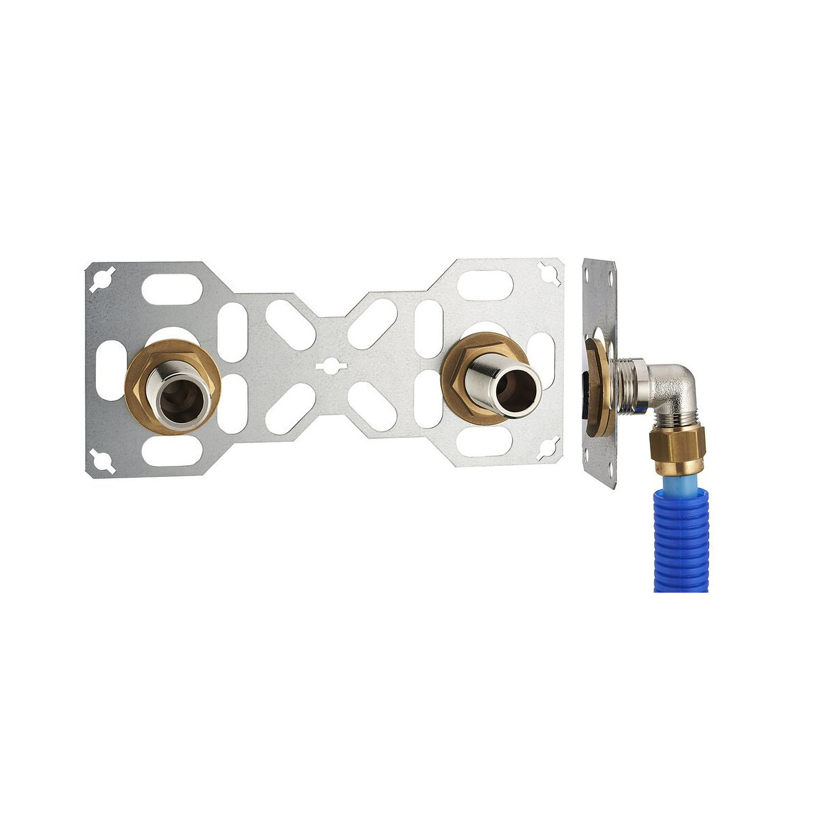 Kit de fixation de robinetterie EasyFix pour installation en PER. Entraxe 150mm sortie mâle. Raccords à compression diamètre 16mm.