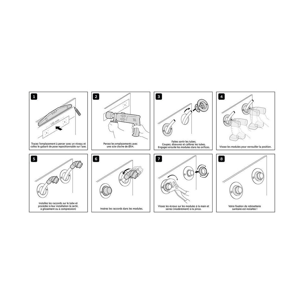 Kit complet permettant de raccorder sa robinetterie sur plaque de plâtre rapidement et facilement. Ce kit Douche et Bain Douche comprend tout pour le raccordement en moins de 5 minutes de votre robinetterie. 1 seul trou à la scie cloche pour installer le module, pas de perçage additionnel, ce qui lui permet d'être le plus robuste du marché ! Le raccord restera visitable même après l'installation, ce qui permet de s'assurer, et, à tout moment pour pouvoir intervenir sans casser le mur ou la cloison ! Facile et rapide à installer, le kit comprend tout pour le raccordement de votre robinetterie.