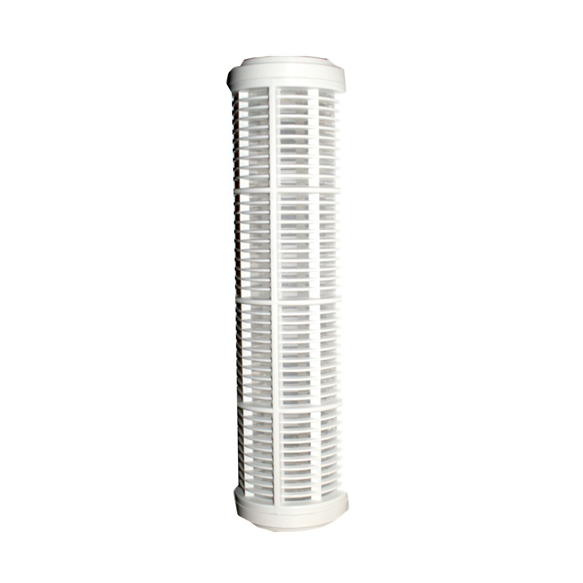 Cartouche filtrante lavable (armature et manchon) 100% alimentaire. Filtration de particules en suspension dans l'eau de taille supérieure à 60microns = argile, rouille, particules de tartre, sable...