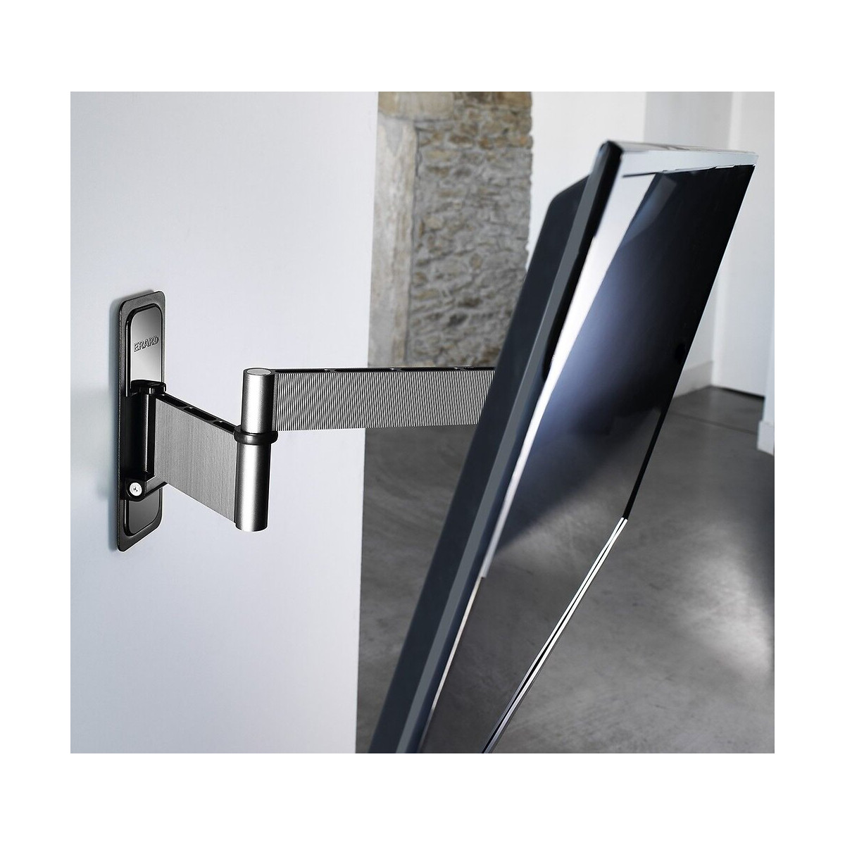 Accessoires fournis : Visserie Compatibilité : Ecrans plats Couleur : Noir Divers : Déport 125 mm, 1 bras, Système breveté de rondelles excentriques pour corriger les erreurs de perçage Gamme : Exo Inclinaison (°) : -25 Matière : Aluminium + acier, Finition aluminium texturé anodisé couleur titane + acier peinture époxy noire Norme VESA : Jusqu'à 200 x 400 mm Orientation (°) : 60 Poids maximum supporté (kg) : 25 Taille écran (cm) : De 76 à 140 cm Taille Maximum de L'Ecran : 55 Taille Minimum de L'Ecran : 30 Type : Meubles TV Type de support : Support orientable / inclinable VESA max (en mm) : 200 x 400
