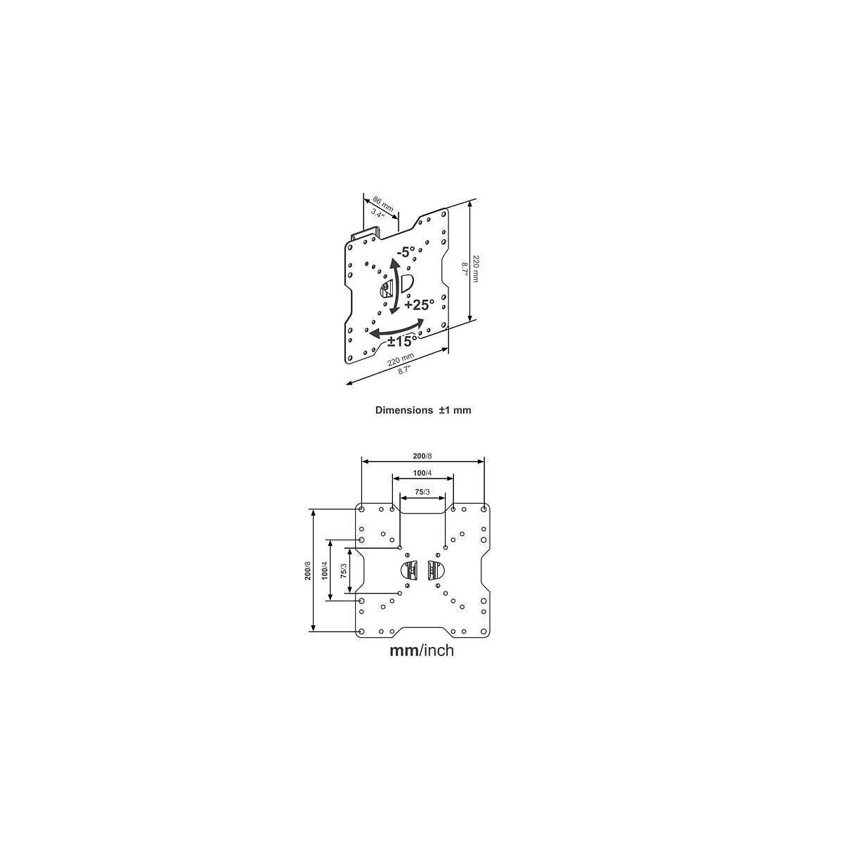 Support mural universel inclinable slim pour TV de 22 a 40'' - 56 a 102 cm - VESA 200 - Poids maxi supporté 30Kg - Inclinable - Distance du mur min 8,6cm - Facile a installer - Vis et niveau a bulle fournis - Les supports muraux Continental Edison ultra-fins et design sont adaptés a une tres large gamme des téléviseurs - Made in ItalySpécifications techniques
