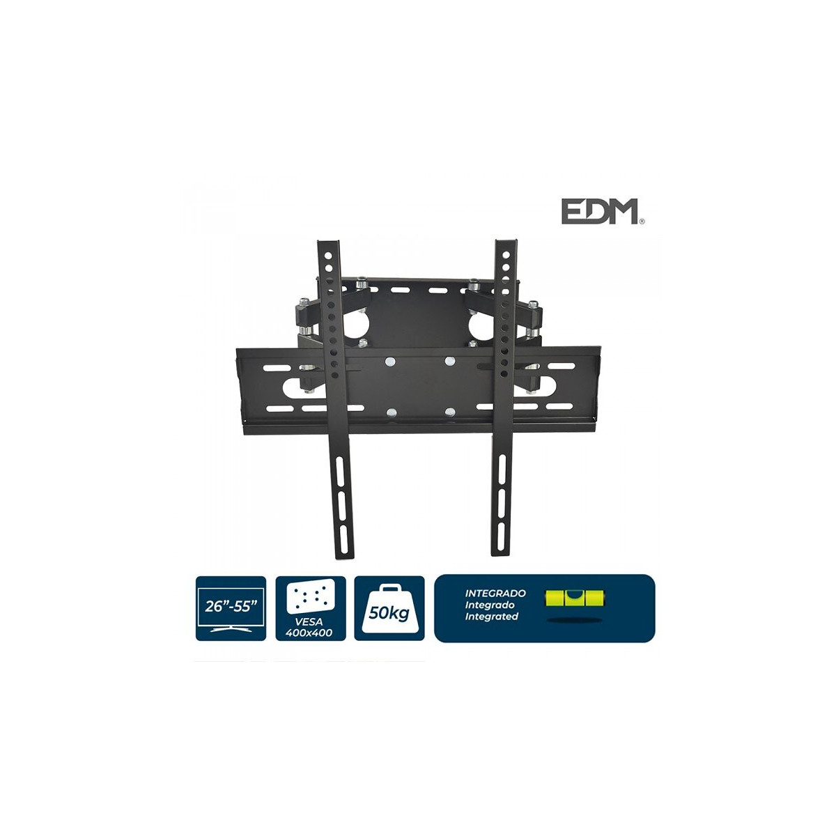 Support plasma / lcd / led 26-55 pouces 50kg max vesa 400x400mm. plage d'inclinaison 15º bas / 5º up. distance maximale du mur 41cm. angle de bras rotatif, gauche et droite 120º. niveau intégré. edmSpécifications techniques